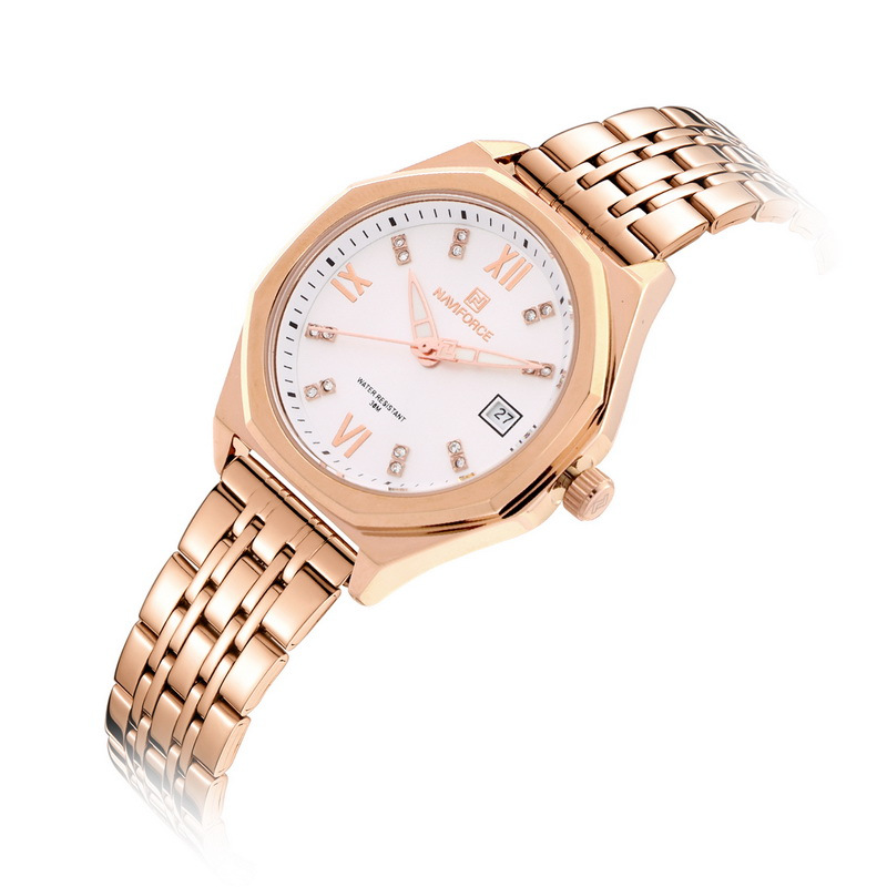 Naviforce นาฬิกาข้อมือผู้หญิงแฟชั่น NF5052 สายสแตนเลส กันน้ำ ระบบอนาล็อก