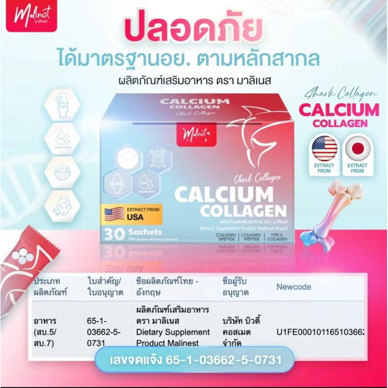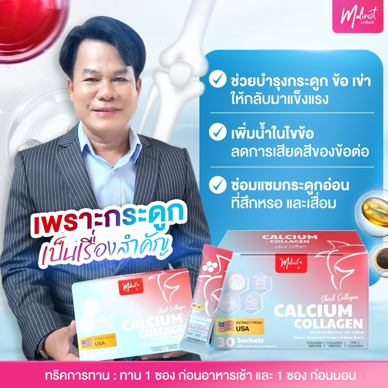 มาลิเนส Malinest Calcium Collagen ผลิตภัณฑ์เสริมอาหาร มาลิเนสแคลเซียม คลอลาเจน1 ผิวพรรณ ข้อกระดูก ครบจบในกล่องเดียว