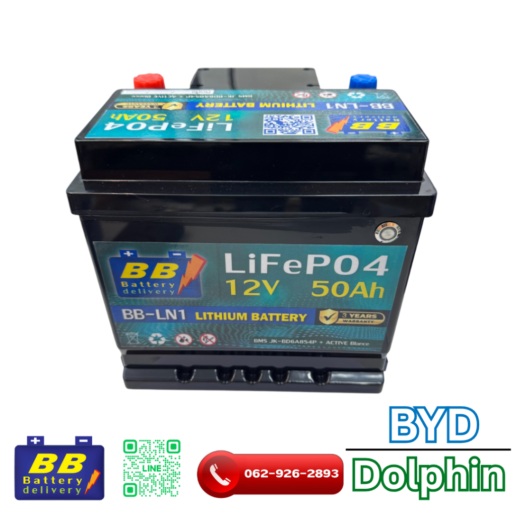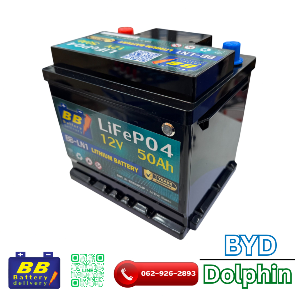 แบตเตอรี่ลิเที่ยม LifePO4 12V 50Ah แบต Auxiliary สำหรับรถยนต์ไฟฟ้า BYD Dolphin รับประกัน 3 ปี