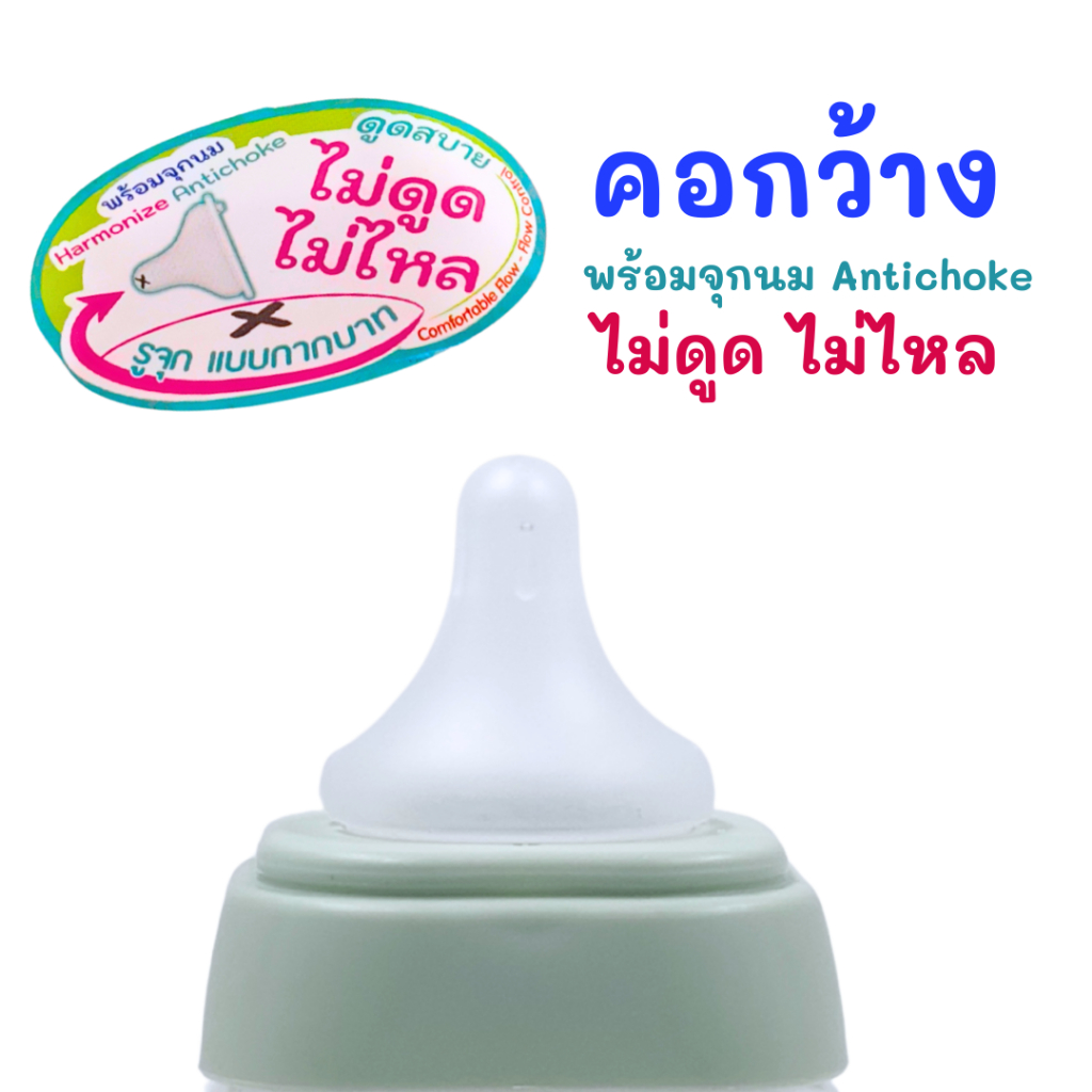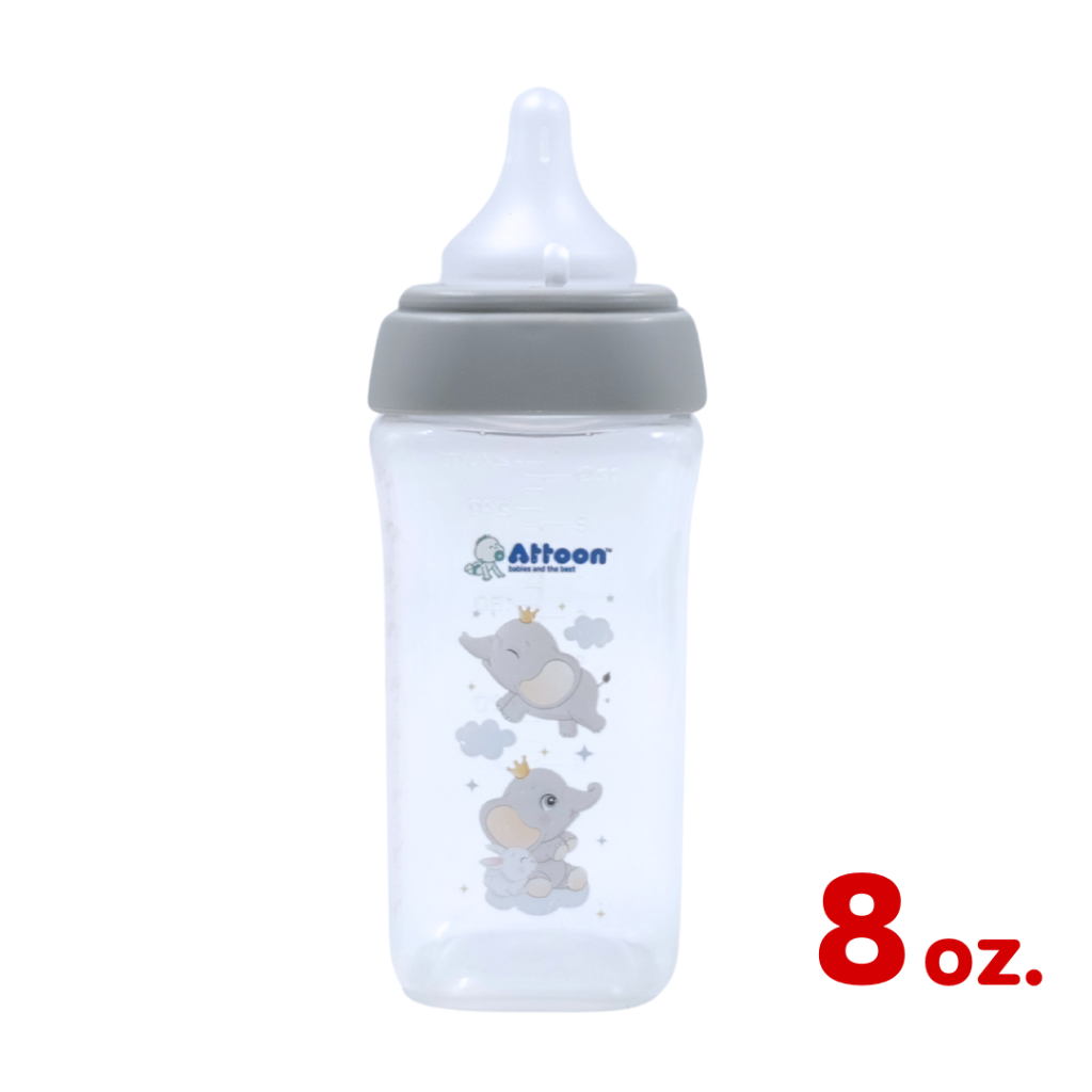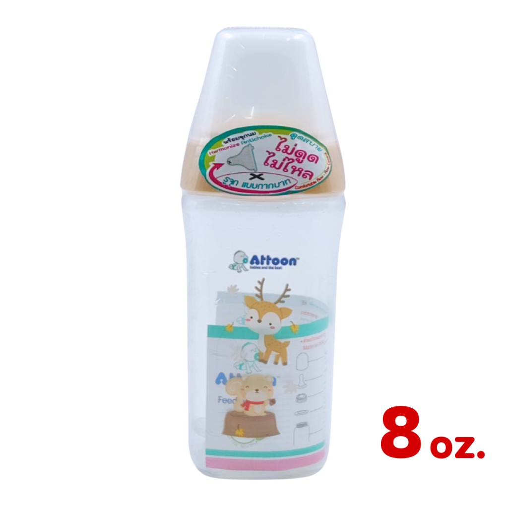 ((1ขวด))ขวดนม Attoon แอทตูน ทรงเหลี่ยม คอกว้าง 8oz.จุกนมไม่ดูดไม่ไหล มาพร้อมจุกนม ไซต์ M