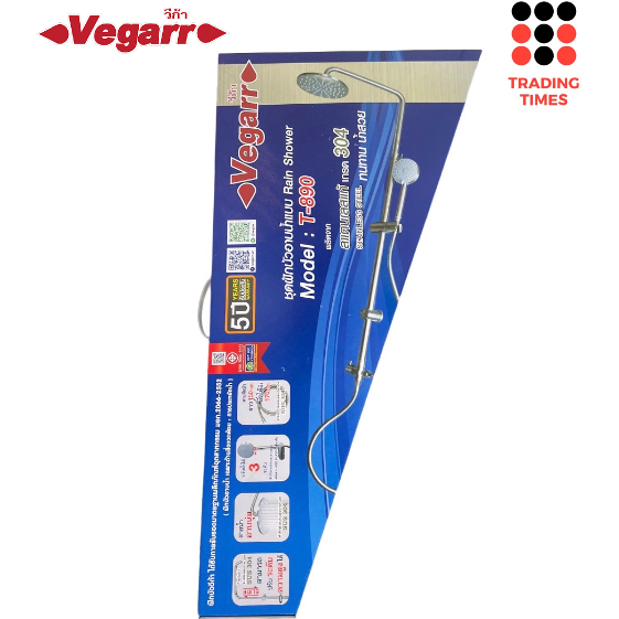 ฝักบัวอาบน้ำ 3 ระบบ Rain shower เรนชาวเวอร์ VEGARR T-890 , VEGARR T-999 สเตนเลส 304 ทุกชิ้นยกเว้นหน้าฝักบัวเล็ก