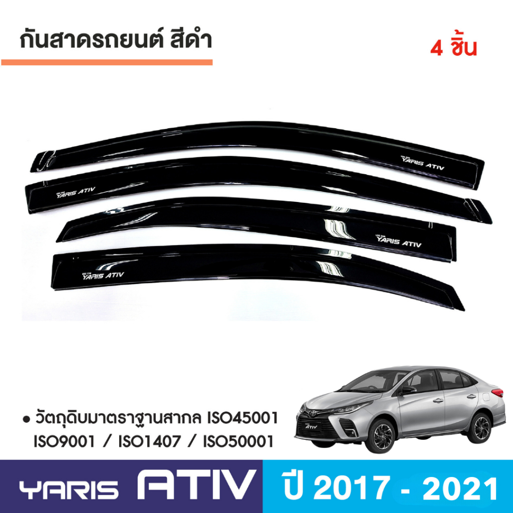 YARIS ATIV 2017 - 2021 คิ้วกันสาดประตู สีดำ 4ประตู (4ชิ้น) คิ้วกันฝน คิ้วบังแดด ชุดแต่งประดับยนต์