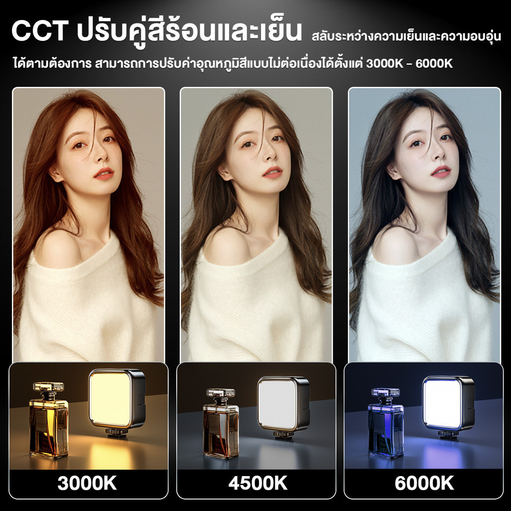 ไฟถ่ายรูป ไฟติดหัวกล้อง Mini RGB ไฟ LED ขนาดพกพา มาพร้อมแบตในตัว 3000k-6000k ความสว่างสามารถปรับได้ตามใจชอบ