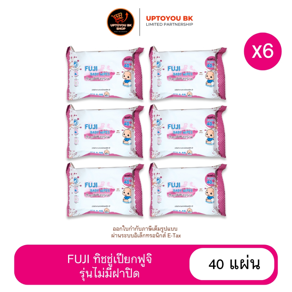 (ชุด 6 ห่อ) FUJI BABY WIPE ทิชชู่เปียก กระดาษเปียก ฟูจิ 1 แพ็ค 40 แผ่น รุ่นมีฝาปิด/ไม่มีฝาปิด**