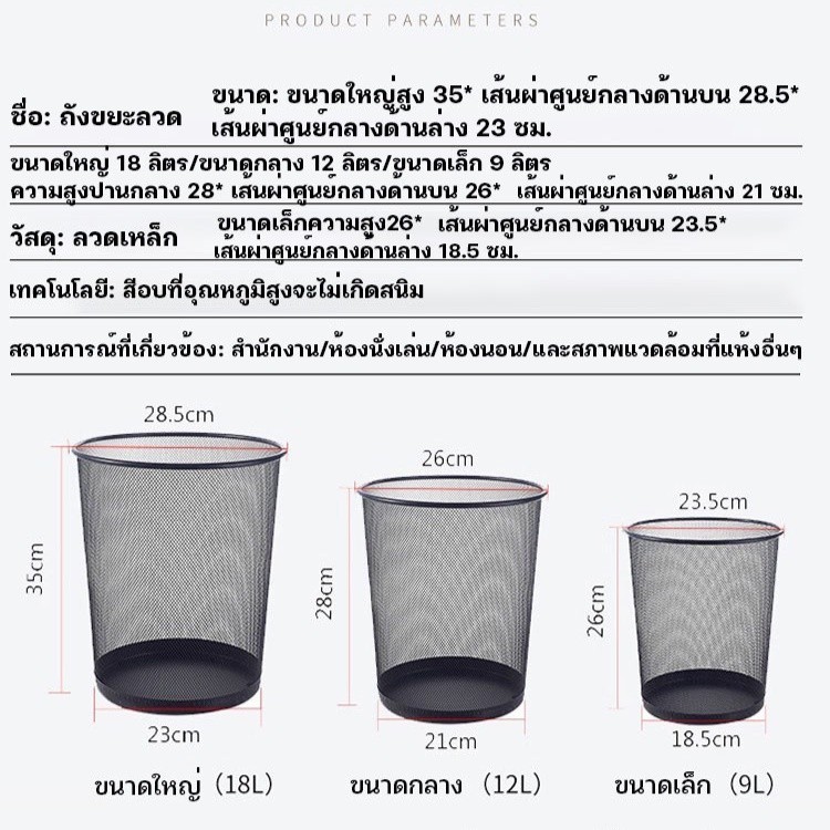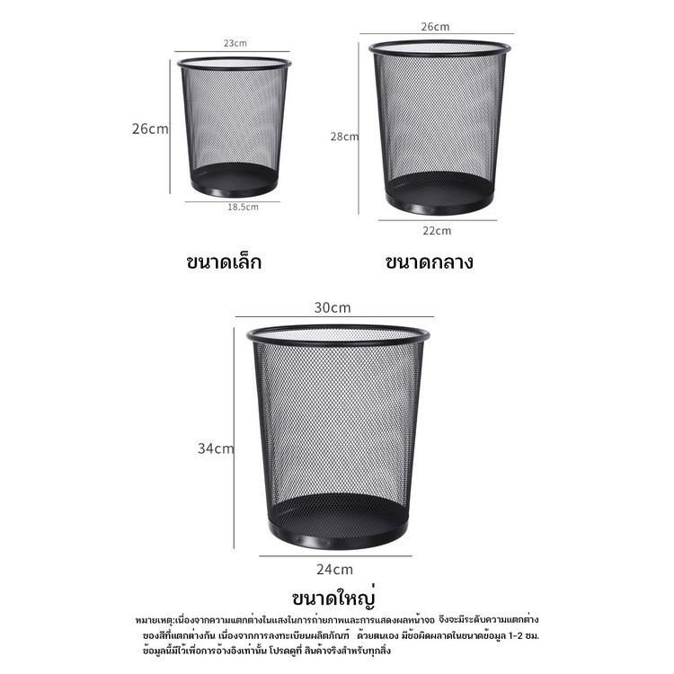 YTL ถังขยะแบบตะแกรงเหล็ก ขนาด 26 เซนติเมตร office garbage can metal ตะกร้าขยะสำนักง สีดำ ถังขยะสำนักงาน