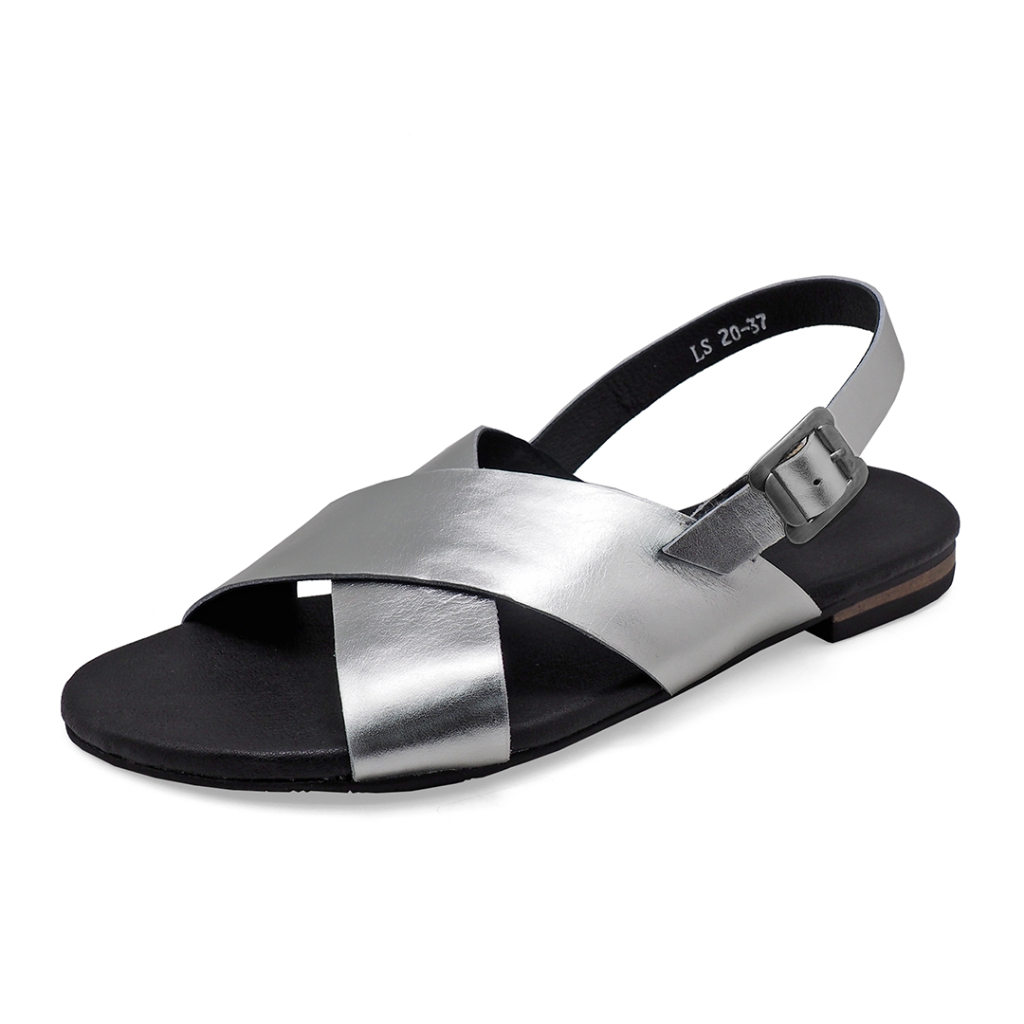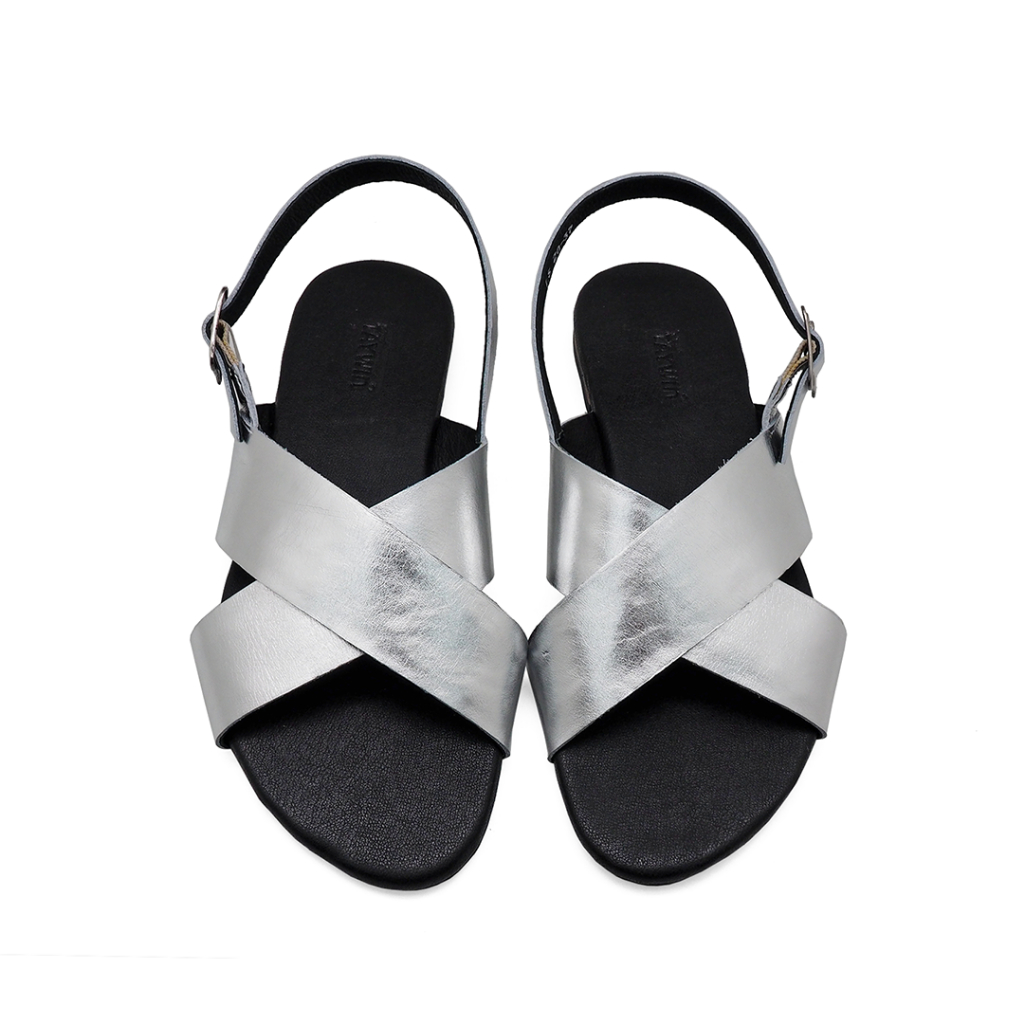TAYWIN(แท้) รองเท้าแตะหนังแท้ ผู้หญิง รุ่น LS-20 หนังยับลายสีเงิน