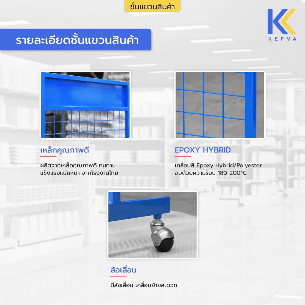 ตะแกรงเหล็ก สแตนโชว์สินค้า มีล้อ รุ่นตะกร้า+แผ่นฐาน ขนาด 60x150 cm ตะแกรงแขวนของขาย ชั้นแขวนโชว์สินค้า ชั้นแขวนฮุก