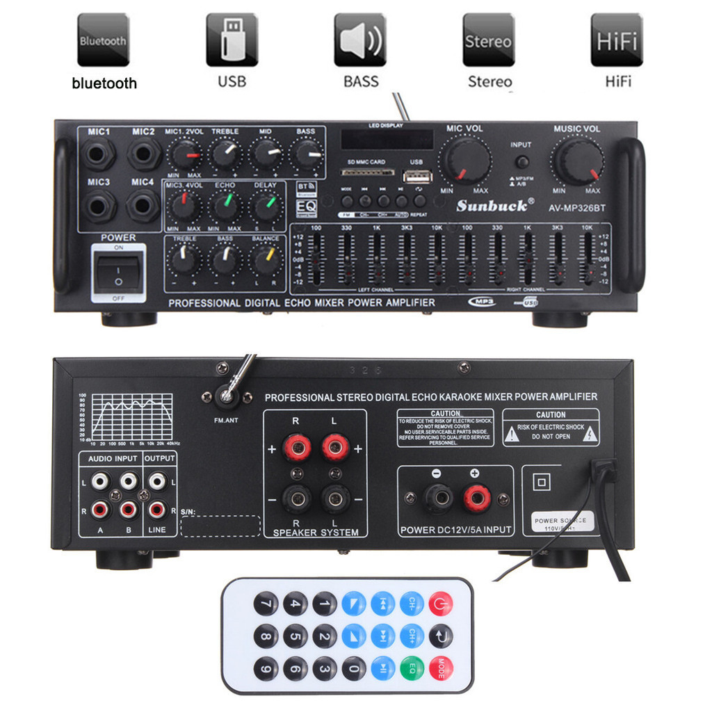 เพาเวอร์แอมป์ 2000W AV-326BT แอมป์ขยายเสียง ใช้ลำโพง 15นิ้วได้ เครื่องขยายเสียง แอมพลิฟายเออร์ มีบลูทูธ MP3 USB SD