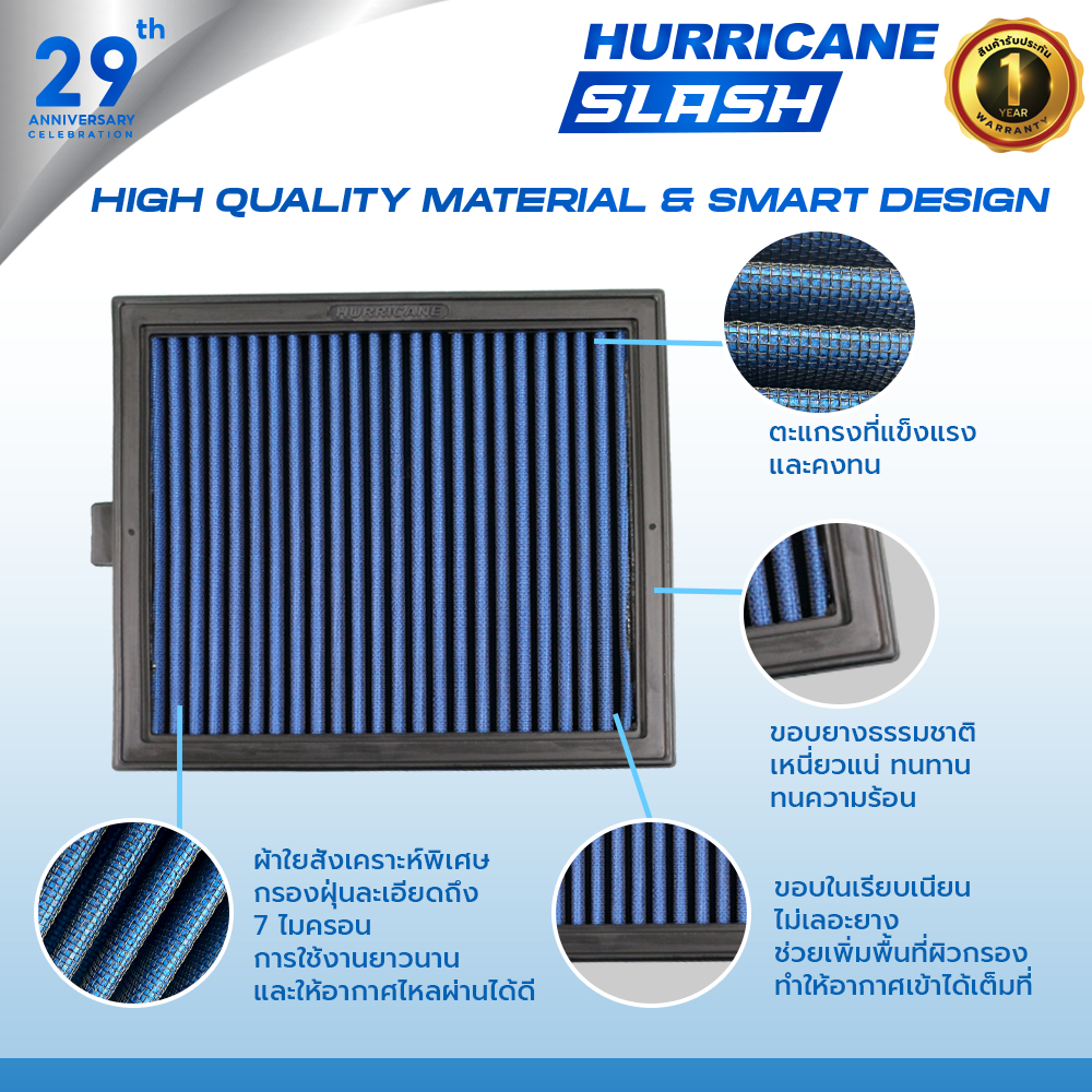 HURRICANE SLASH กรองอากาศผ้าน้ำเงินรุ่นใหม่ล่าสุด Toyota ( Fortuner , Hilux Revo , Innova ) HS-1024-BL