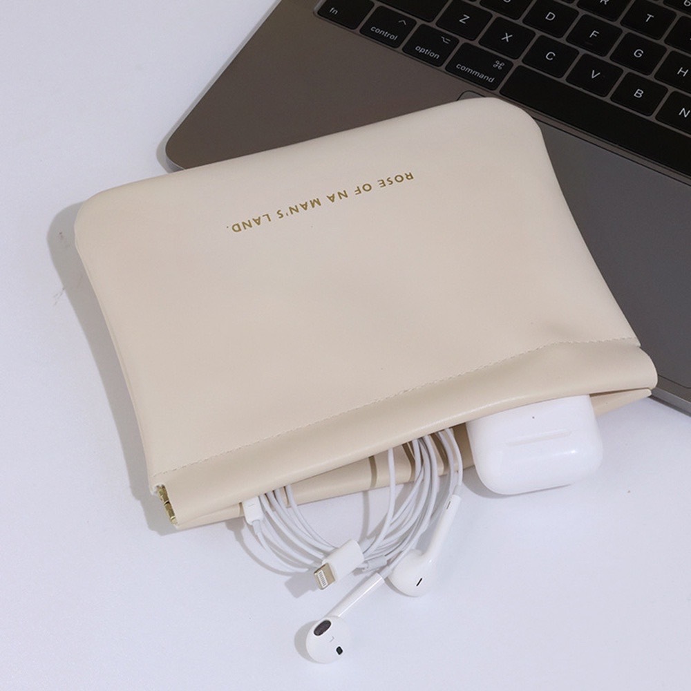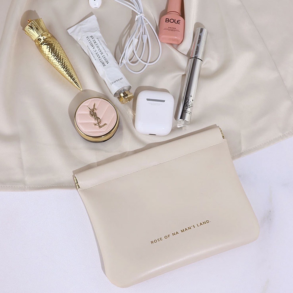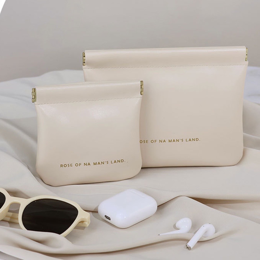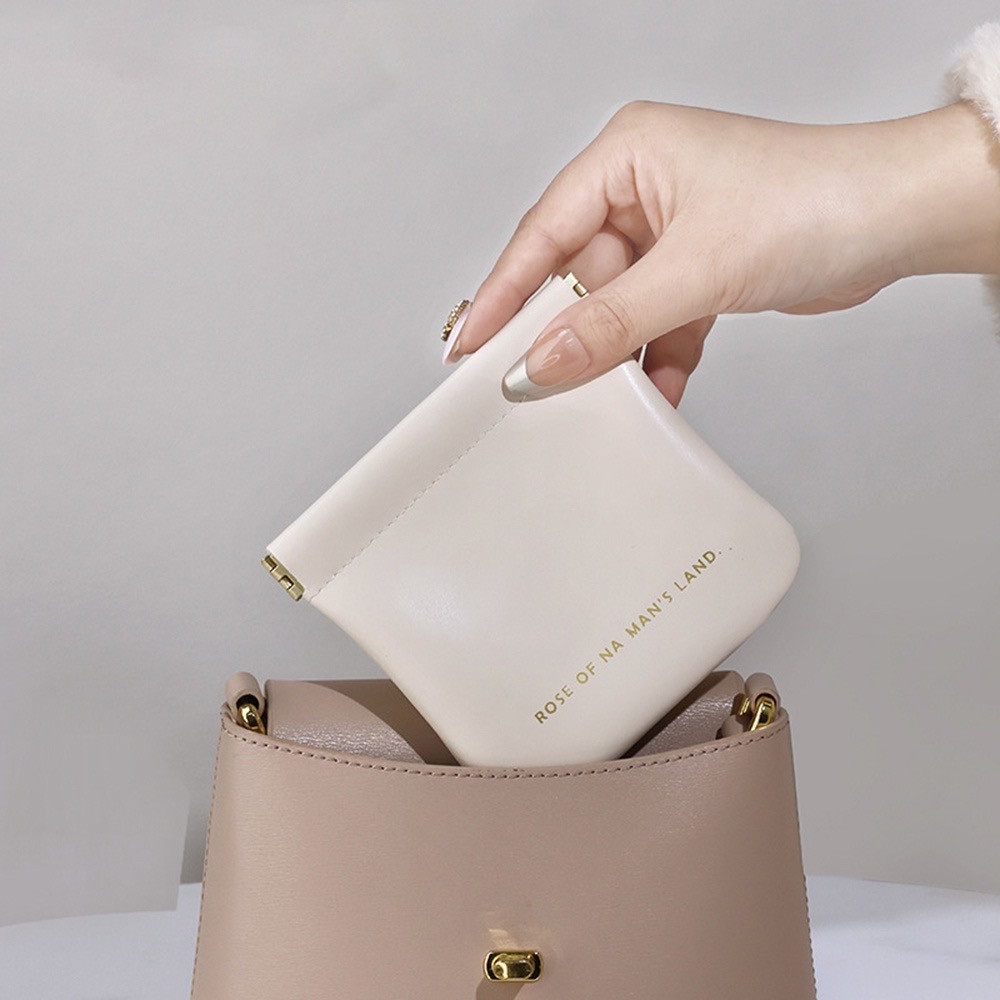 E163 กระเป๋าสตางค์ หนัง PU แบบพกพา พร้อมฝาปิดในตัว สําหรับใส่เหรียญ ลิปสติก เครื่องสําอาง
