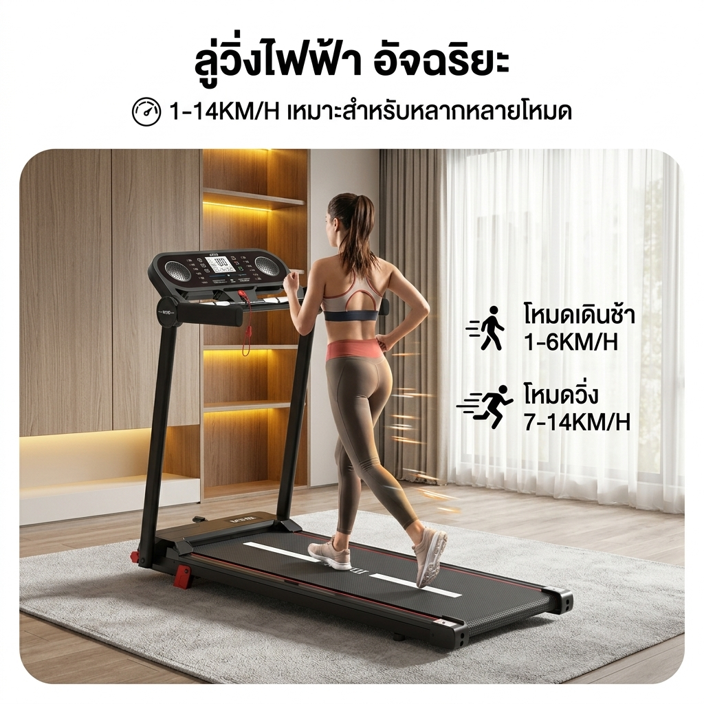 ลู่วิ่งไฟฟ้า treadmill ลู่วิ่ง M11 ขนาด 58 ซม. สามารถเชื่อมต่อกับเครื่องวัดอัตราการเต้นของหัวใจและเครื่องนวดได้ฟรี