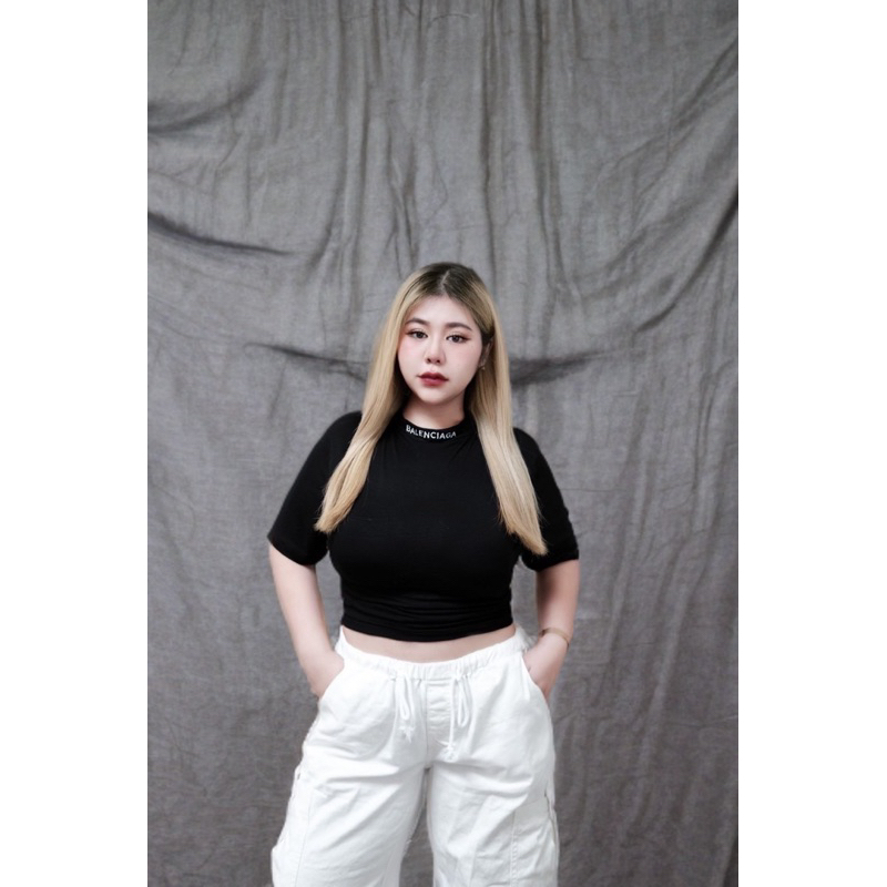 𝗕𝗮𝗹𝗲𝗻 𝗦𝗵𝗶𝗿𝘁 เสื้อครอปคอปีน ปักตัวอักษร ♥️สาวอวบ♥️ มีส่งด่วน