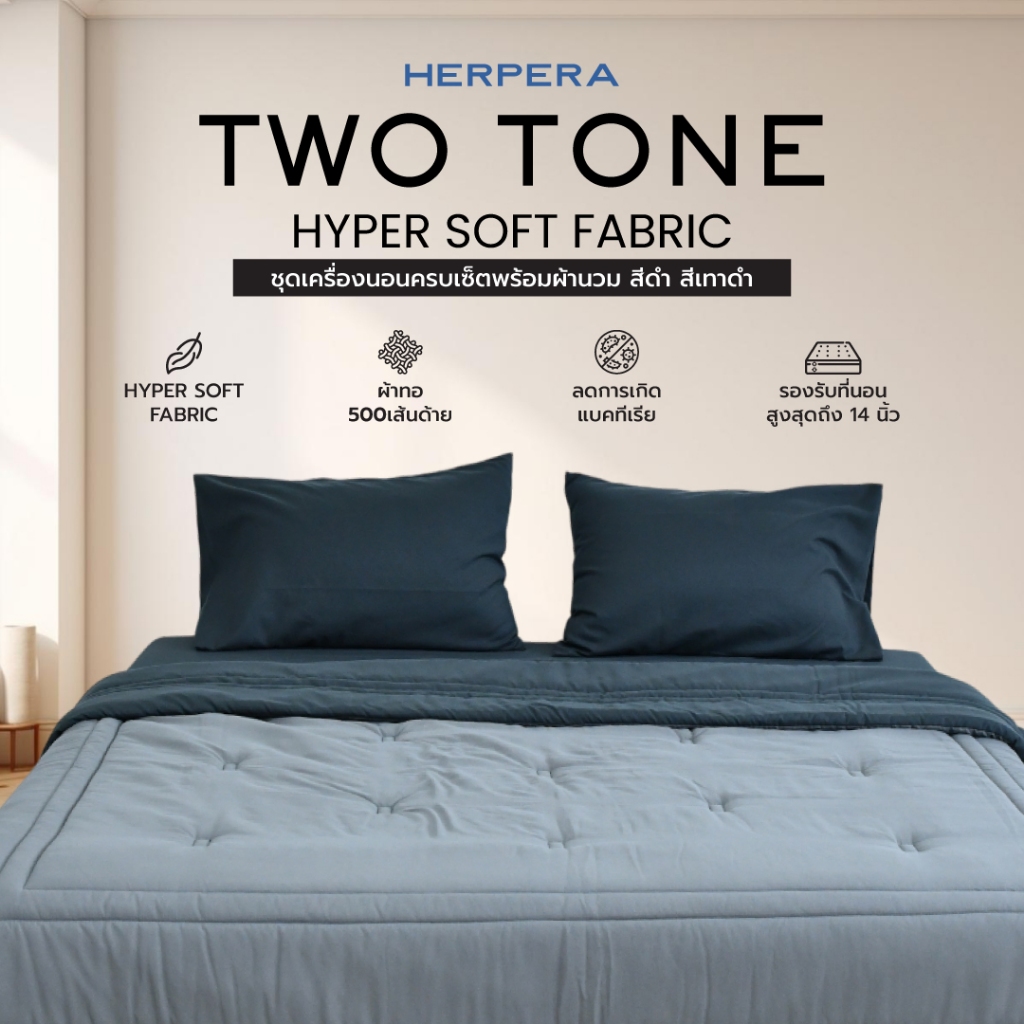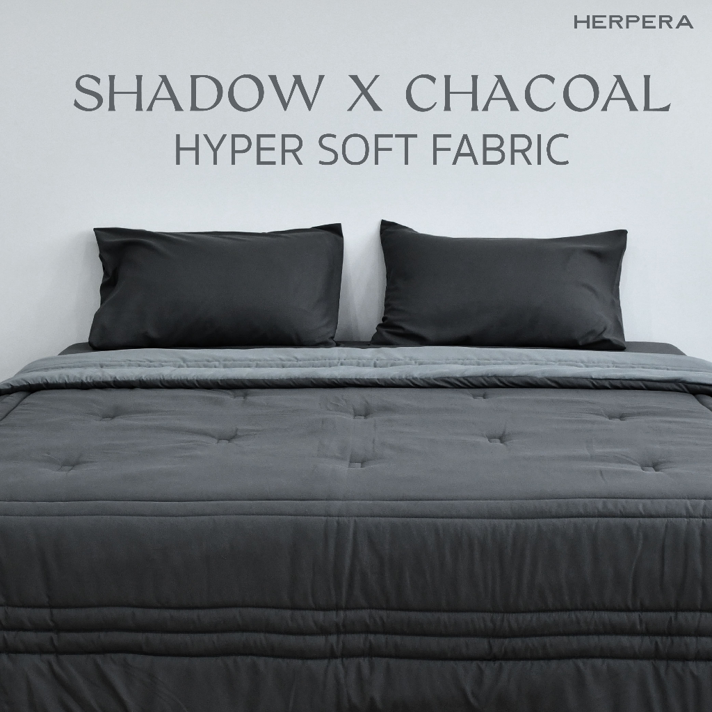 HERPERA ผ้าปูที่นอน ชุดเครื่องนอน พร้อมผ้านวมสีทูโทน สีดำxสีเทาดำ ขนาด 3.5 ฟุต 5 ฟุต 6 ฟุต