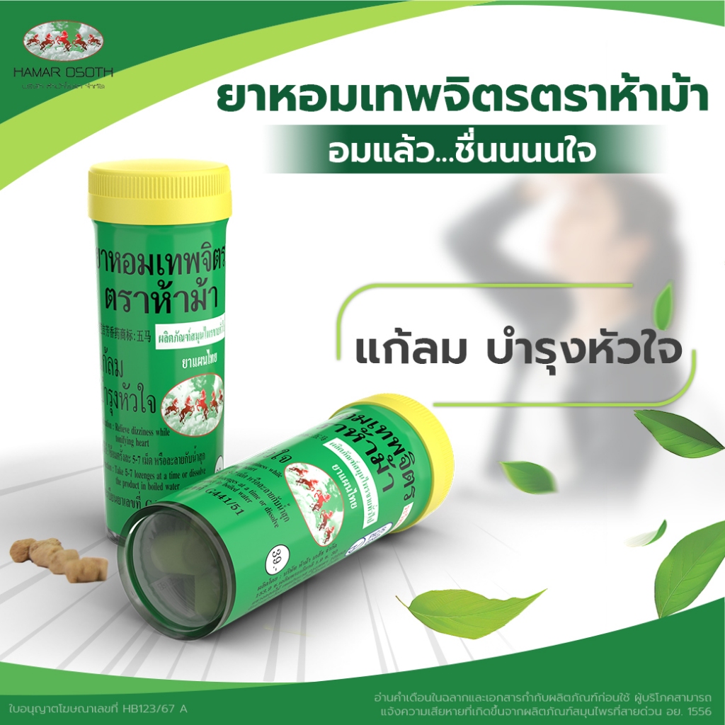 ห้าม้า ยาหอมเทพจิตร เม็ดอม ขนาด 30 เม็ด [12 ขวดเล็ก] ห้าม้าโอสถ