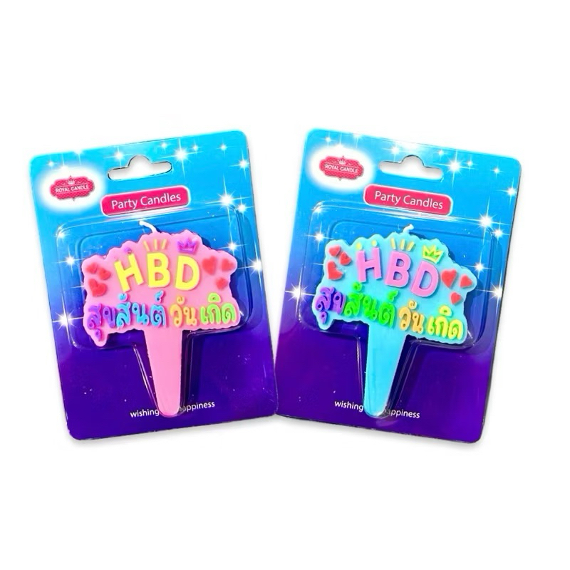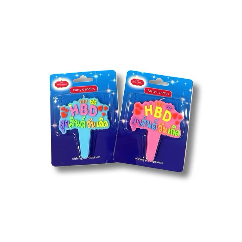 BIrthday candles เทียนวันเกิด HBDสุขสันต์วันเกิด 1 เเพ็คบรรจุ 10 น.