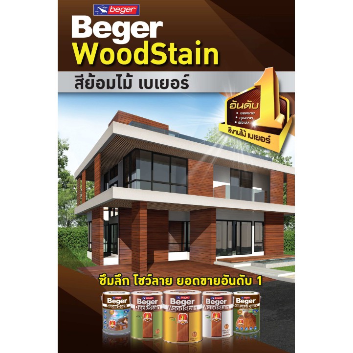 Beger WoodStain สีย้อมไม้ วูดสเตน ชนิด เงา ทาผนังภายในและภายนอก 1/4 แกลลอน สีทาผนังไม้ ผนังไม้ สีทาไม้