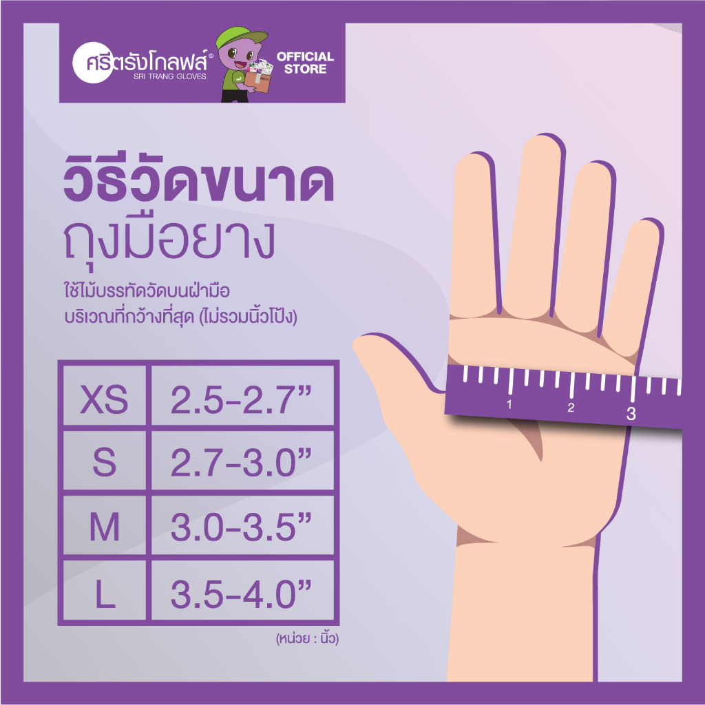 ถุงมือตรวจโรค ชนิดมีแป้ง (ศรีตรัง โกลฟส์) (กล่องสีม่วง) (ยกลัง 20 กล่อง) - ออกใบกำกับภาษีได้