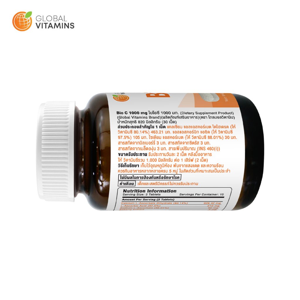 [1 ขวด] ไบโอซี วิตามินซี 1000 มก. โกลบอลวิตามิน Bio C Vitamin C 1000 mg Global Vitamins วิตามินซีพลัส บิลเบอร์รี่ ซิตรัส