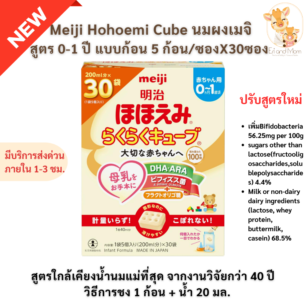Meiji Hohoemi Eazy Cube นมผงเมจิอัดเม็ด สำหรับเด็ก 0-1 ปี สูตรใหม่ เสริมโพรโบโอติก