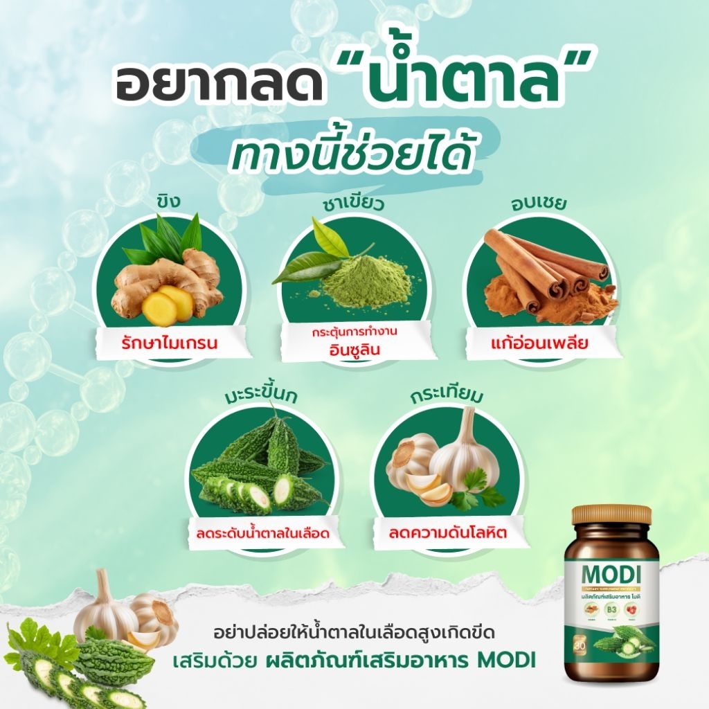 MODI โมดิ เบาหวาน น้ำตาลสูง แท้100% 30แคปชูล