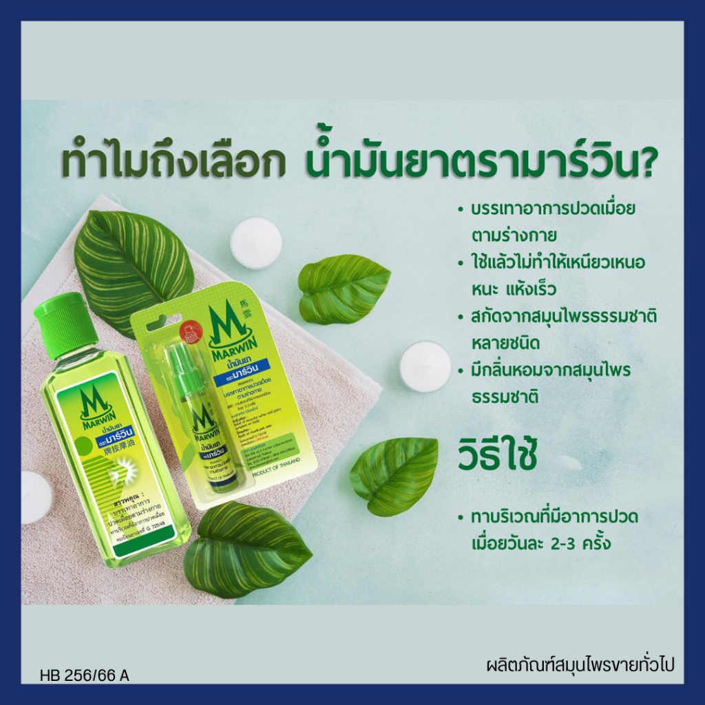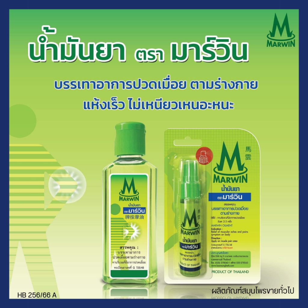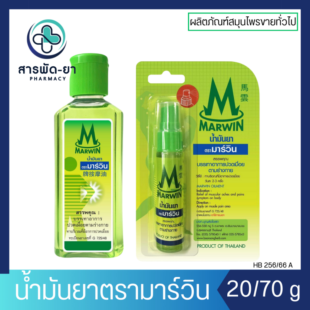 [1 ขวด] น้ำมันยา ตรามาร์วิน Marwin 20/70 กรัม บรรเทาอาการปวด เมื่อย ตามร่างกาย