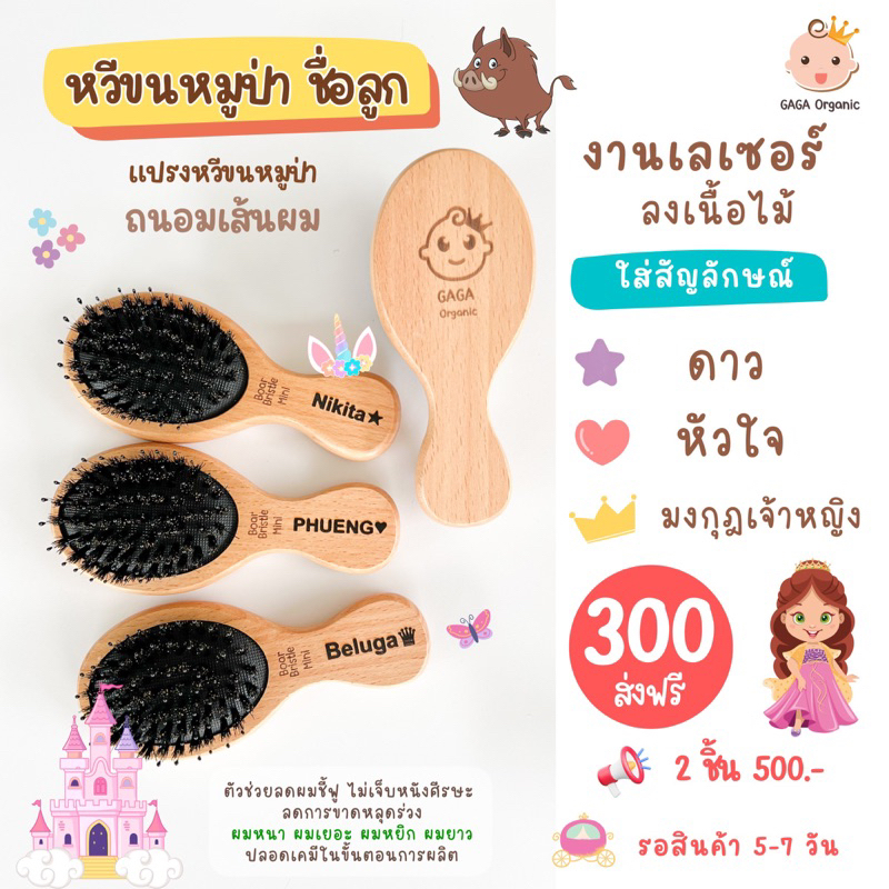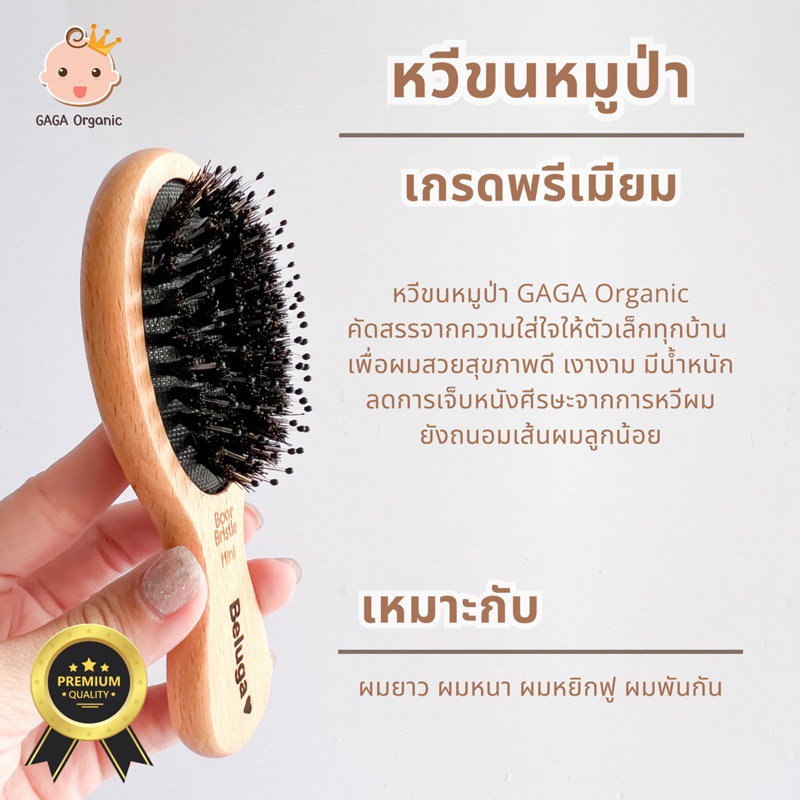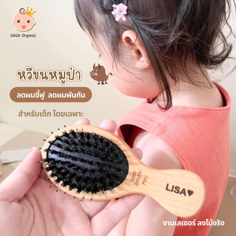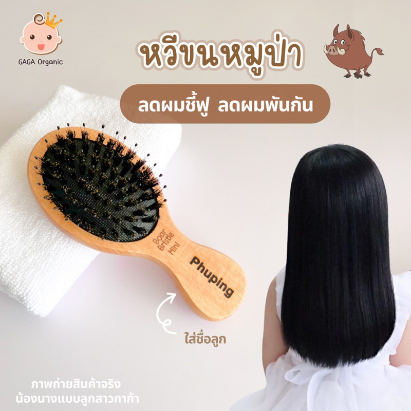 [เด็กโต-ใส่ชื่อ] GAGA หวีขนหมูป่าแท้ “ลดเส้นผมพันกัน” ผมยาว ผมหนา ผมหยิกฟู | GAGA Organic
