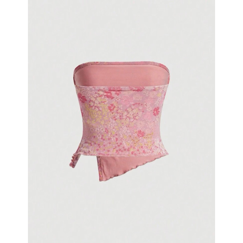 (พร้อมส่ง)เสื้อเกาะอก ลายดอกไม้ จีบข้าง มี 3สีให้เลือก