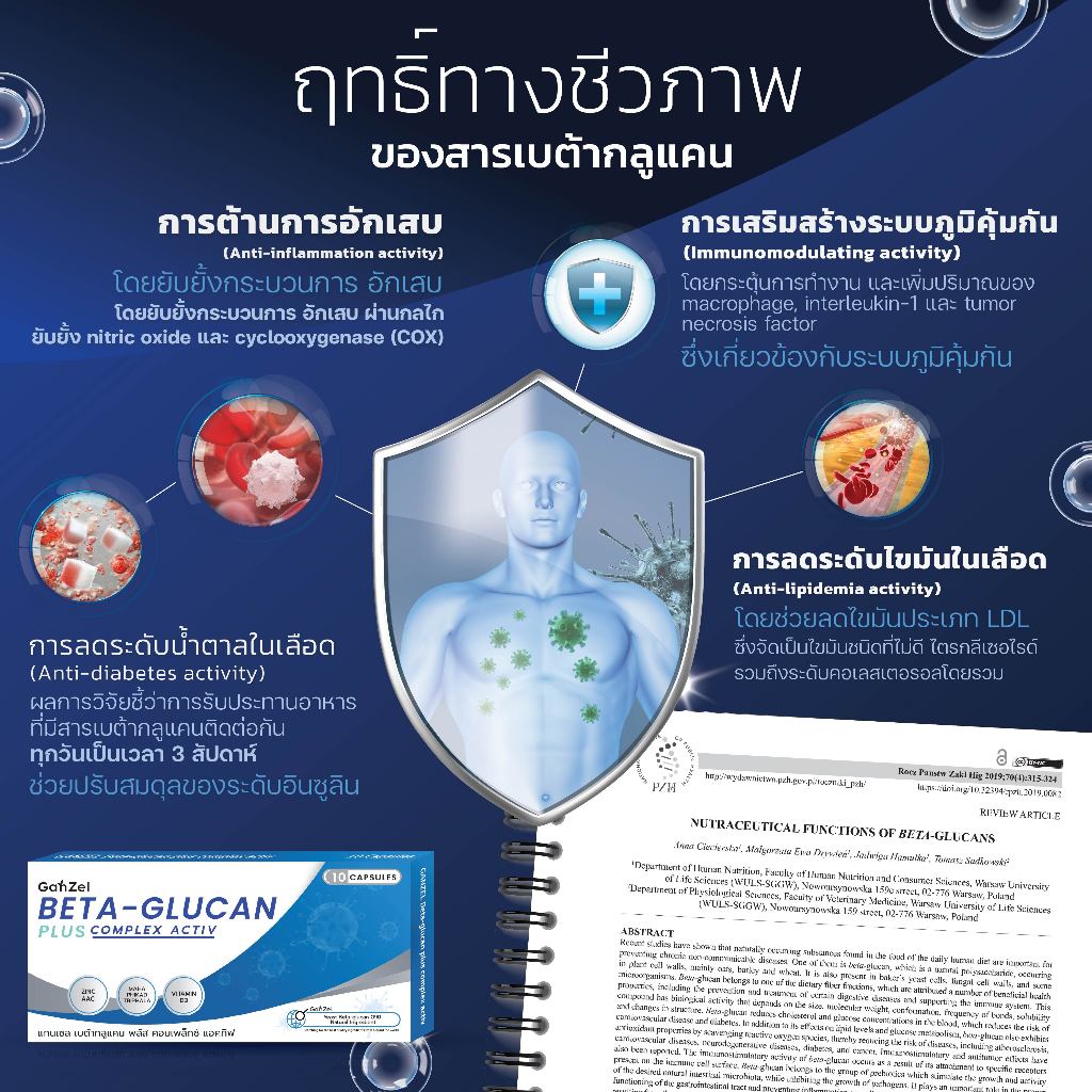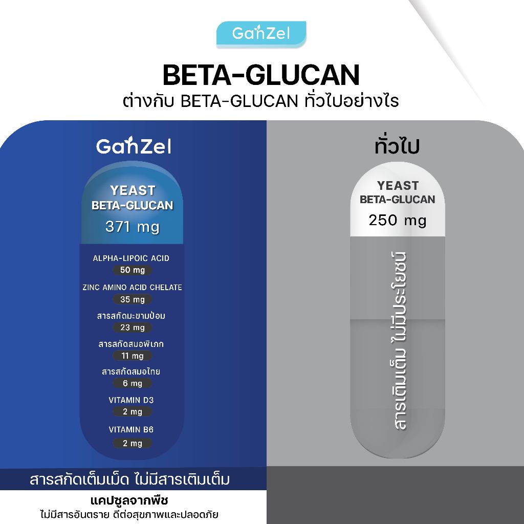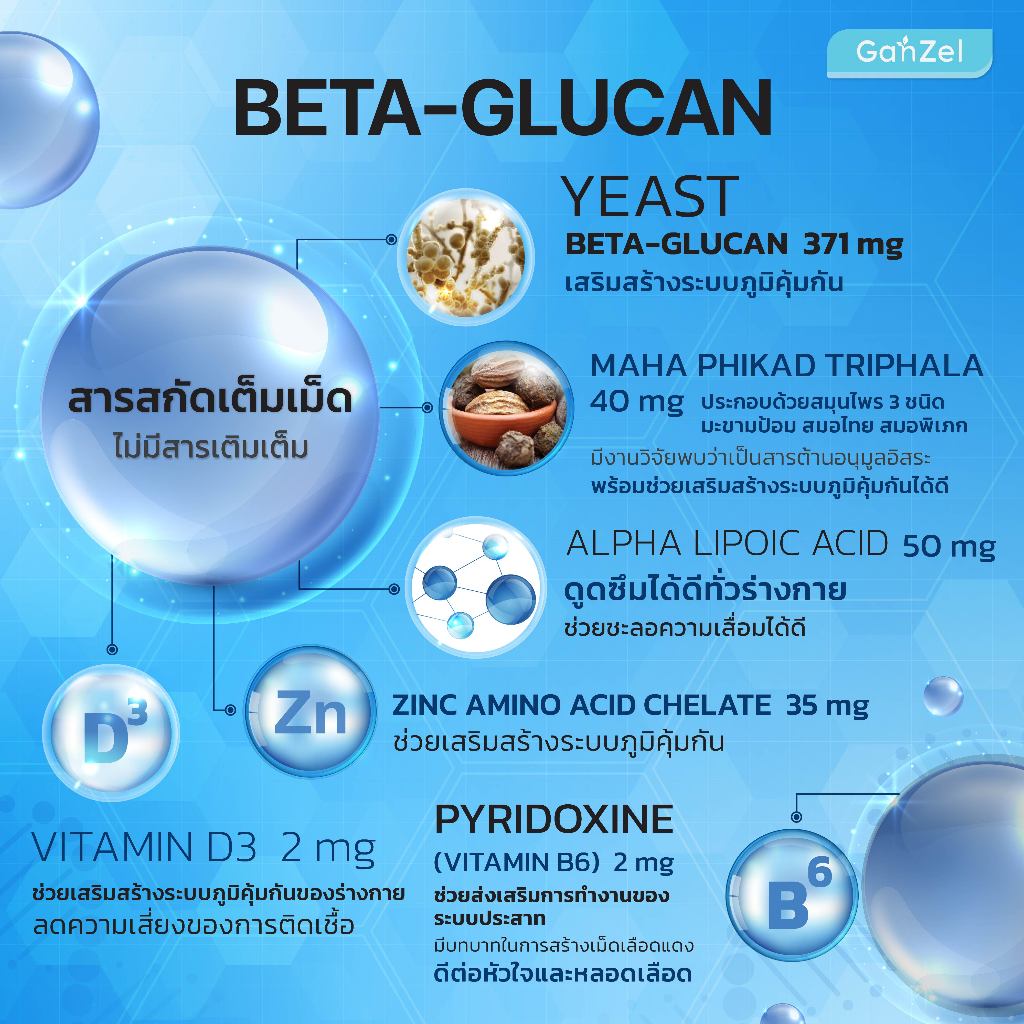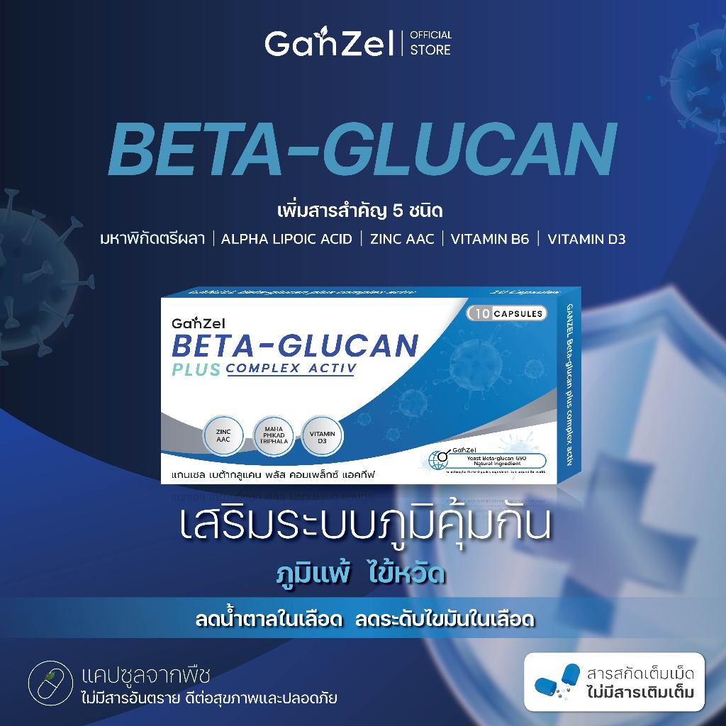 อาหารเสริม สร้างภูมิคุ้มกัน ภูมิแพ้ไข้หวัด (GP001) GANZEL Beta Glucan Plus Complex Active
