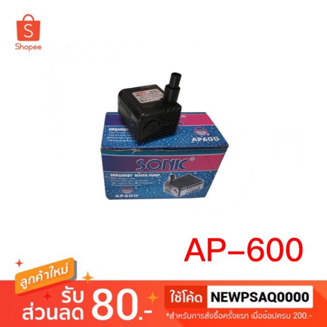 ปั๊มน้ำขนาดจิ๋ว SONIC AP 600 ปั๊มน้ำตู้ปลา อ่างปลา AP600 ใช้สายขนาด 8มิล