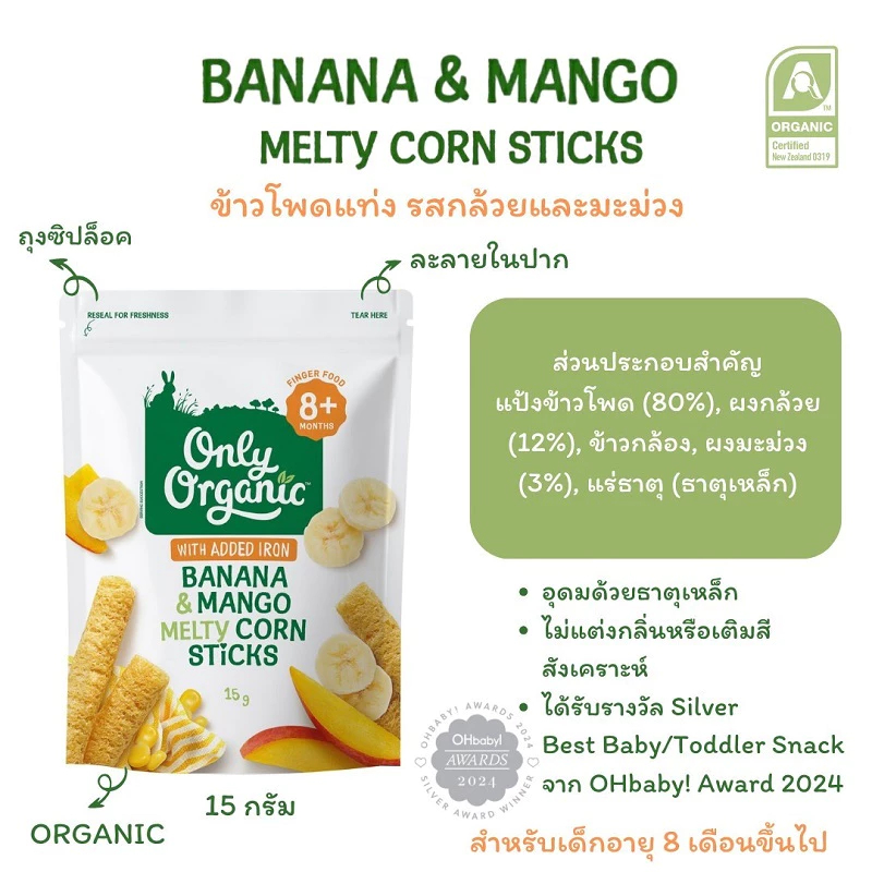 Only Organic ขนมข้าวโพดแท่งออร์แกนิค สำหรับเด็กวัย 8+ เดือนขึ้นไป