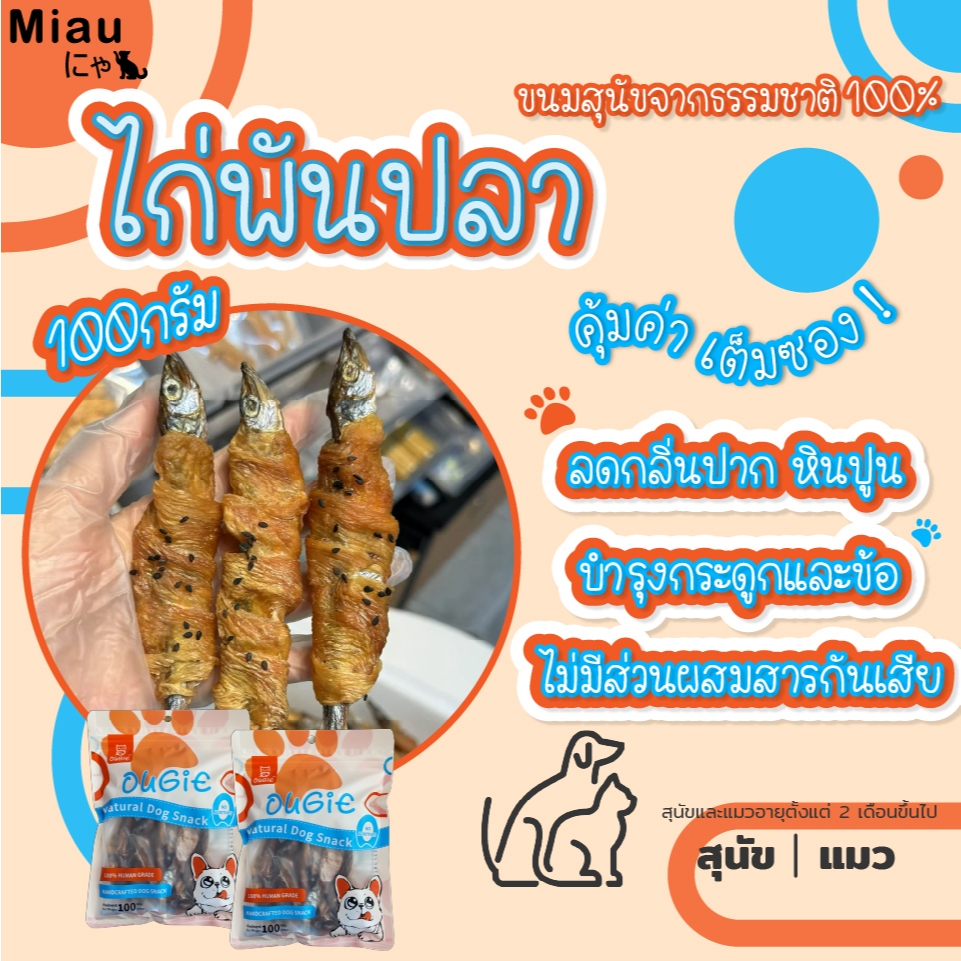 🔥โปร 5แถม1🔥Miau Miau Cat & Dog Snack Chicken & Fish ไก่พันปลา ขนมสัตว์เลี้ยง ขนมทานเล่น ปลาไข่ รางวัลสัตว์เลี้ยง #PET01
