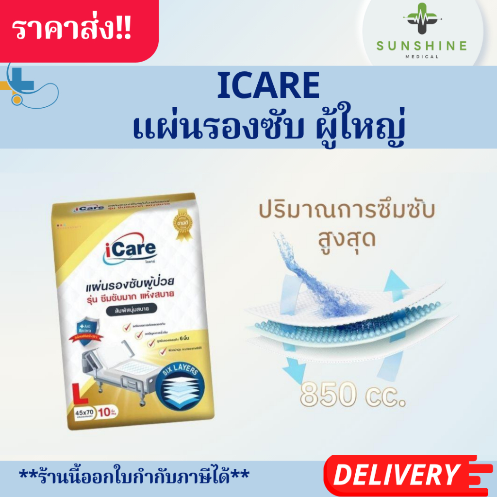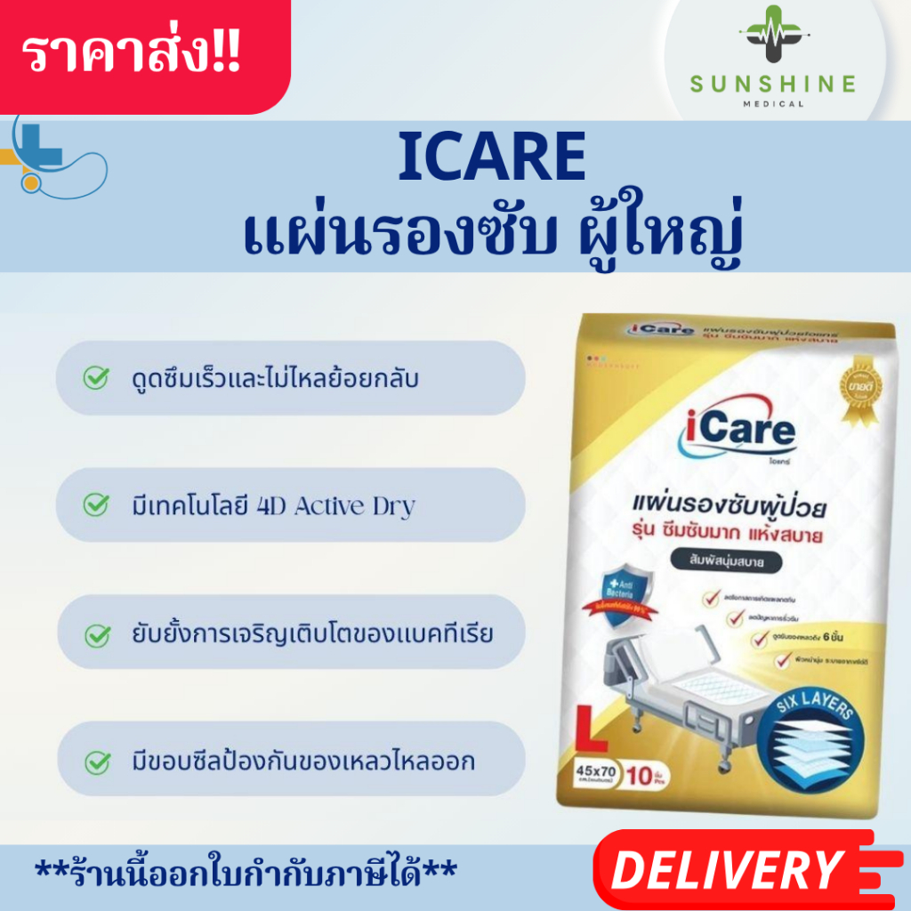 แผ่นรองซับ ผู้ใหญ่ iCare Size L ขนาด 45 x 70 cm. แพ็คเกจใหม่ (1แพ็ค10ชิ้น)