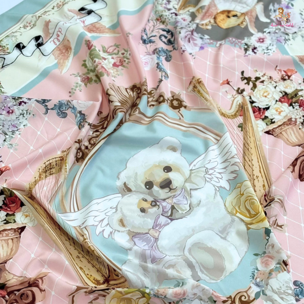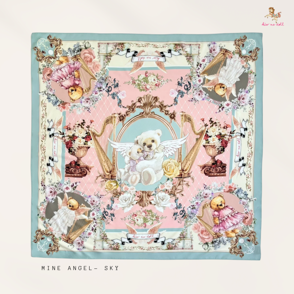 Kiss Me Doll ผ้าพันคอ ผ้าคลุมไหล่ น้องหมี ลาย Mine Angel ขนาด 100x100 cm.