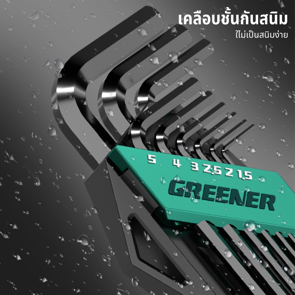 GREENER ชุดประแจหกเหลี่ยม ประแจ ประแจหกเหลี่ยม หกเหลี่ยม หัวบอล หกเหลี่ยม 9ตัว/ชุด