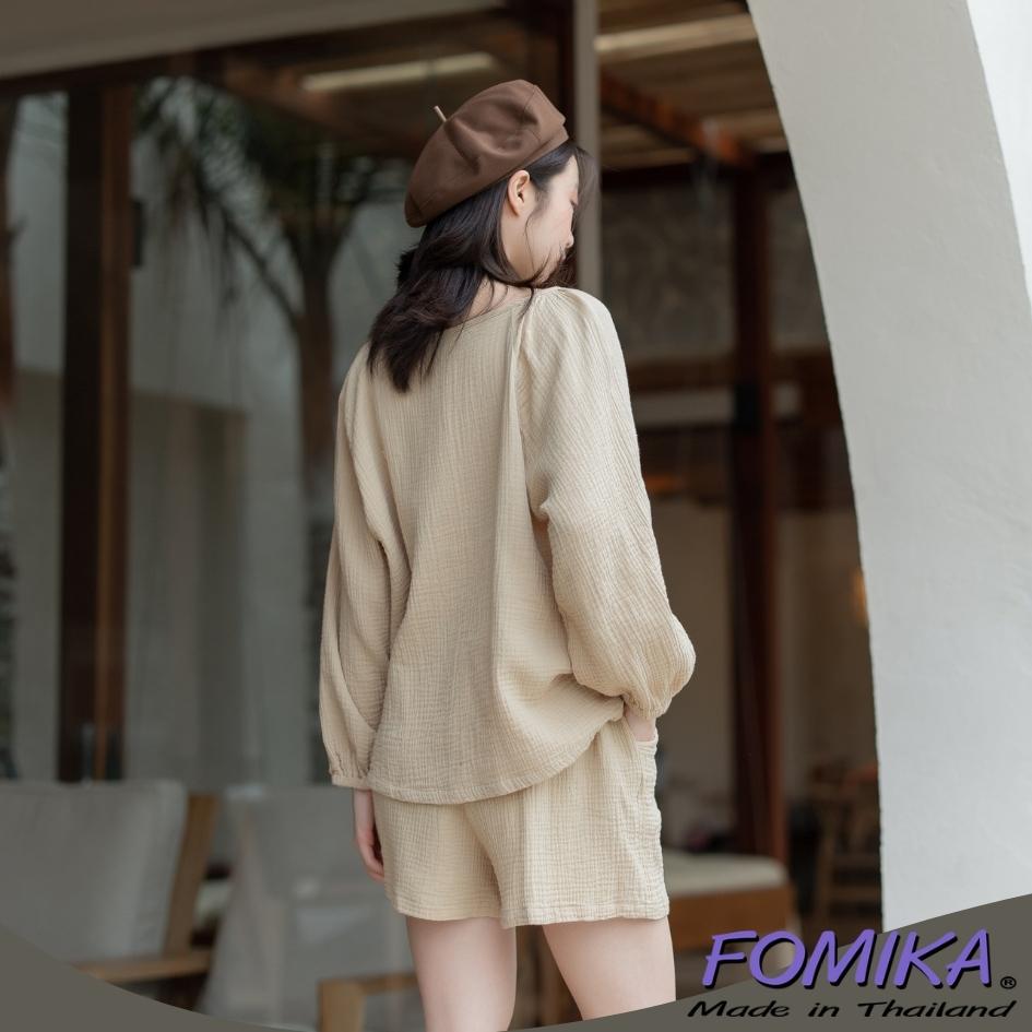 S11 ชุดเซ็ตแขนยาว ผ้าสาลู2ชั้น พร้อมกางเกงขาสั้น
