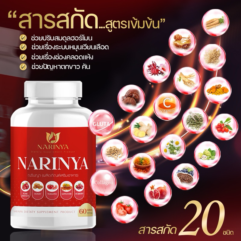NARINYA ณรินญา ผลิตภัณฑ์เสริมอาหารสำหรับสตรี ปรับสมดุลฮอร์โมน ลดตกขาว ฟิต กระชับ จบทุกปัญหาภายใน
