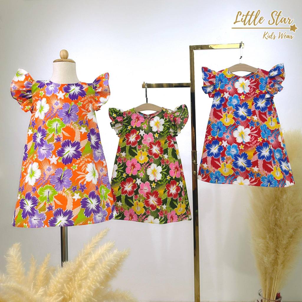 ⭐️Littlestar 👧🏻 มินิเดรสสงกรานต์ ลายดอกไม้ ผ้าคัตต้อน สีสด GNB0516