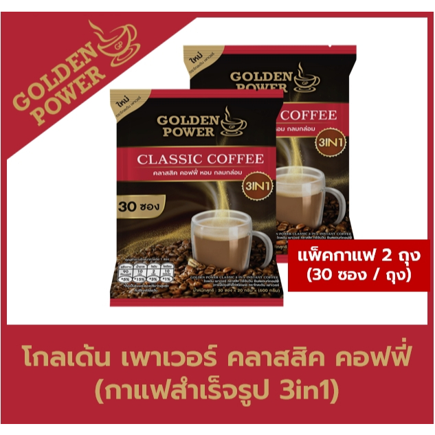 NEW!! กาแฟ คลาสสิค คอฟฟี่ 3in1 ตราโกลเด้น เพาเวอร์ (Golden Power Classic Coffee 3in1) 30 ซอง/ถุง