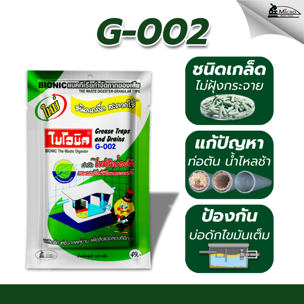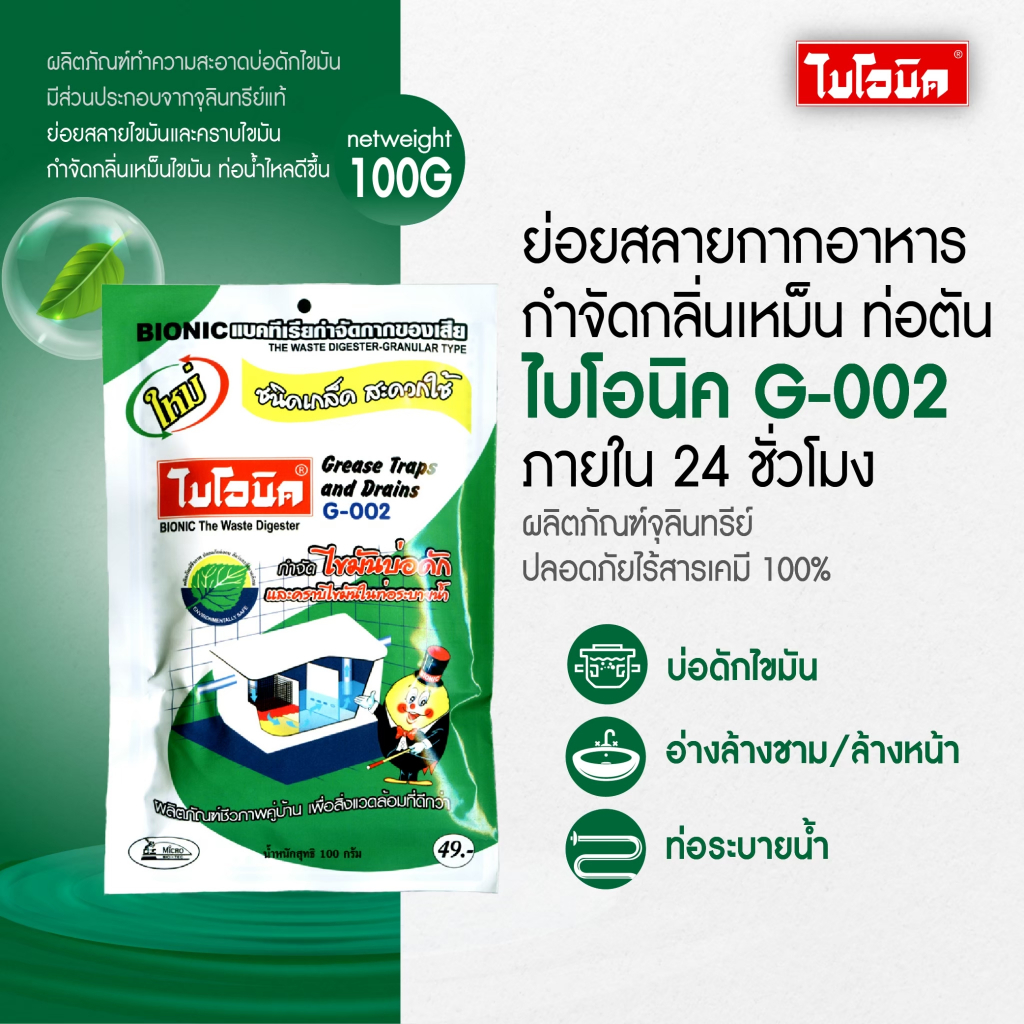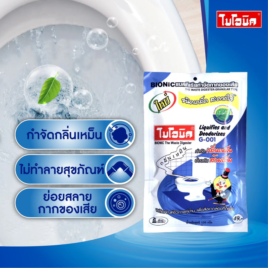 [แพ็กคู่] Bionic ไบโอนิค G001 + G002 จุลินทรีย์กำจัดกลิ่นเหม้น ป้องกันส้วมตัน กำจัดไขมัน บ่อดักไขมันเต็ม