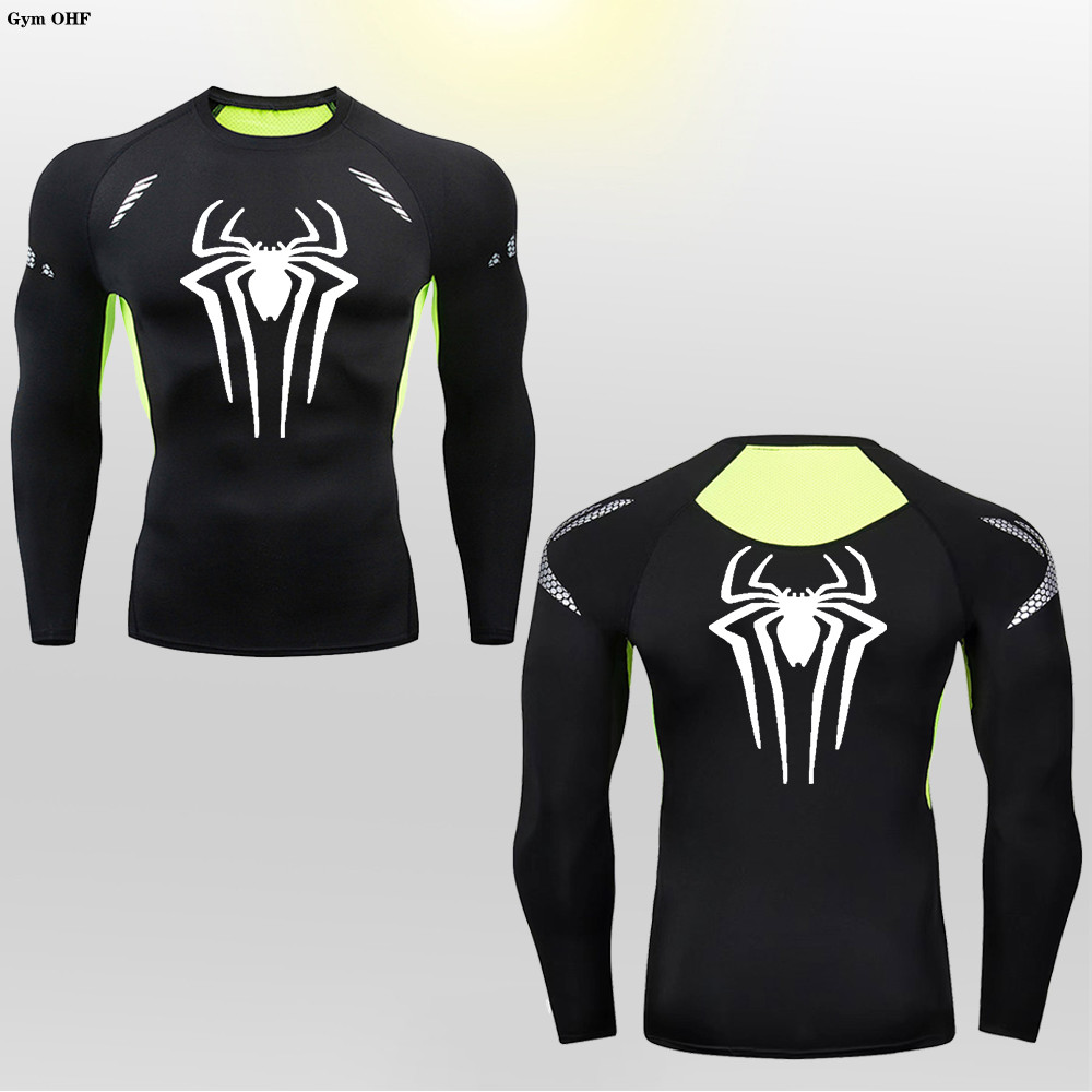เสื ้ อยืดฮีโร ่ ของผู ้ ชาย เสื ้ อยืดแขนยาวกีฬารัดรูป เสื ้ อยืด Spider-Man Sportshirts