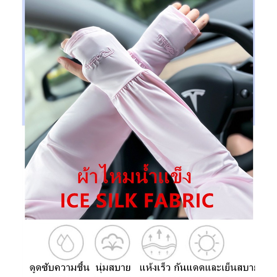 ปลอกแขน 1 คู่ ผ้าไหมน้ำแข็ง กันแดด UV ระบายอากาศดี ลดกลิ่นอับ สัมผัสนุ่มใส่สบาย ไม่ย้วย ปิดถึงข้อมือ Freesize รุ่น:XT1