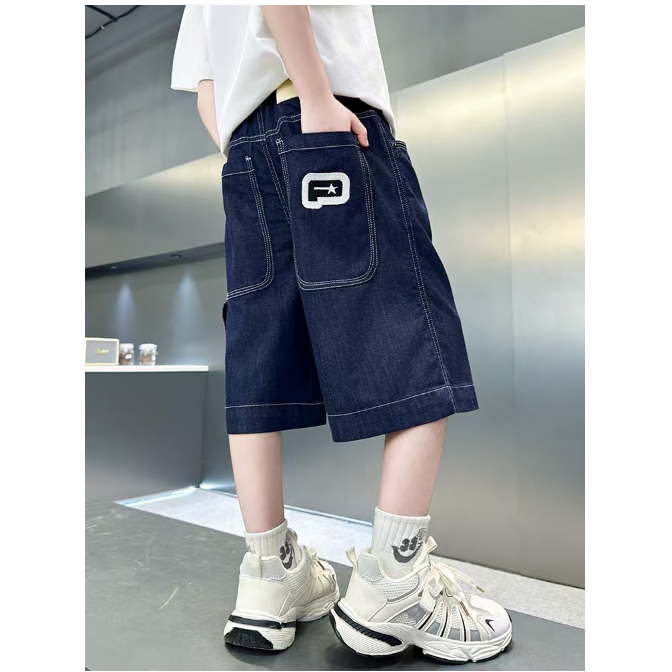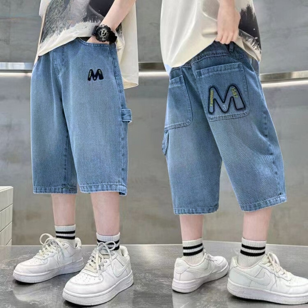 กางเกงขาสั้นยีนส์สไตล์เกาหลีใหม่สำหรับเด็กผู้ชาย ดีไซน์ย้อนยุคและสบาย ทำจากผ้ายีนส์คุณภาพสูง เหมาะสำหรับเด็กผู้ชายอายุ 5-12 ปี