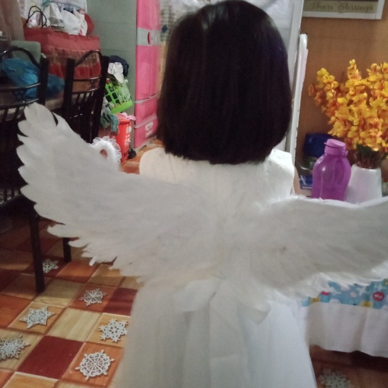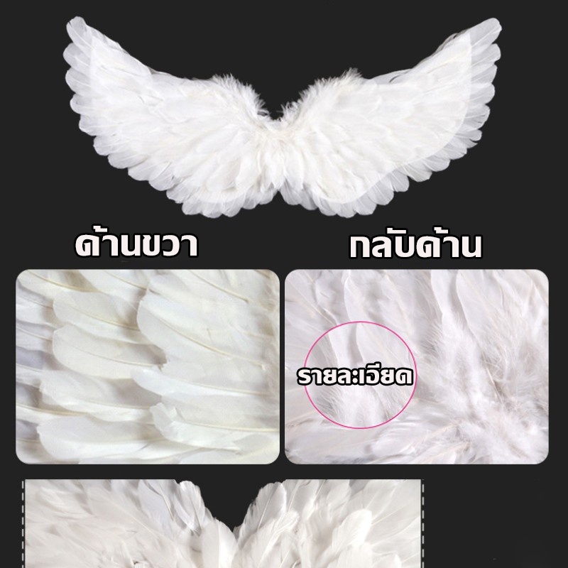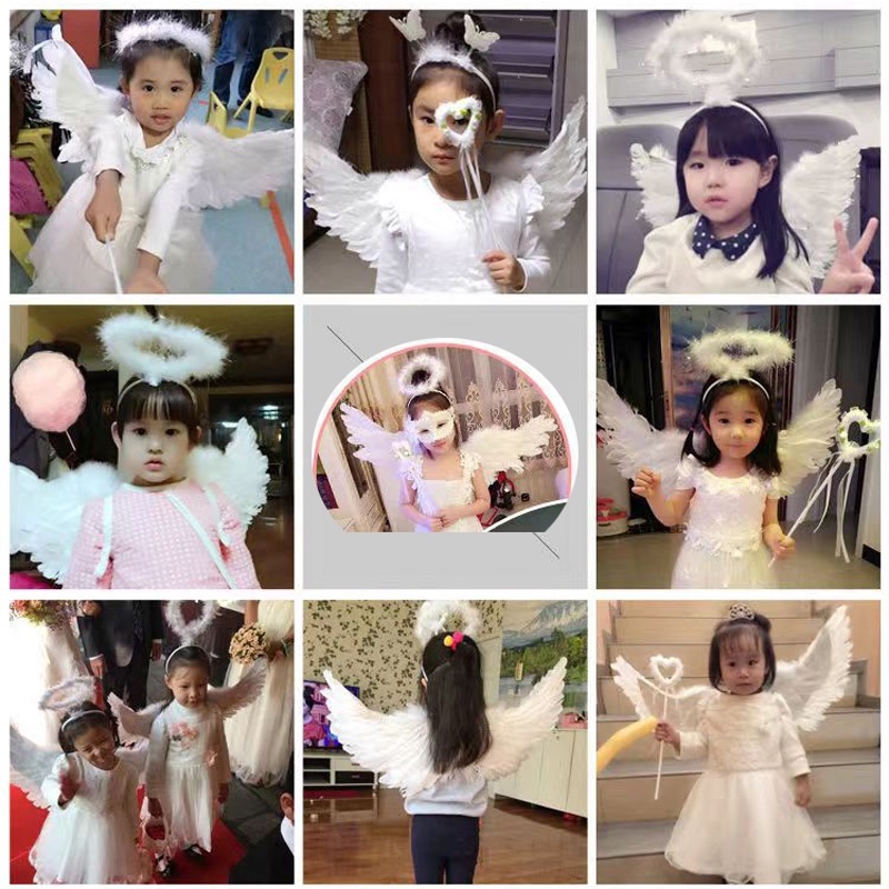 พร้อมส่ง✨FunnyMoment✨ปีกนางฟ้า เด็ก ปีกขนนก พับได้ มีวงแหวนไม้คฑา สีขาว อุปกรณ์ประกอบฉากเวทีAngel Wing
