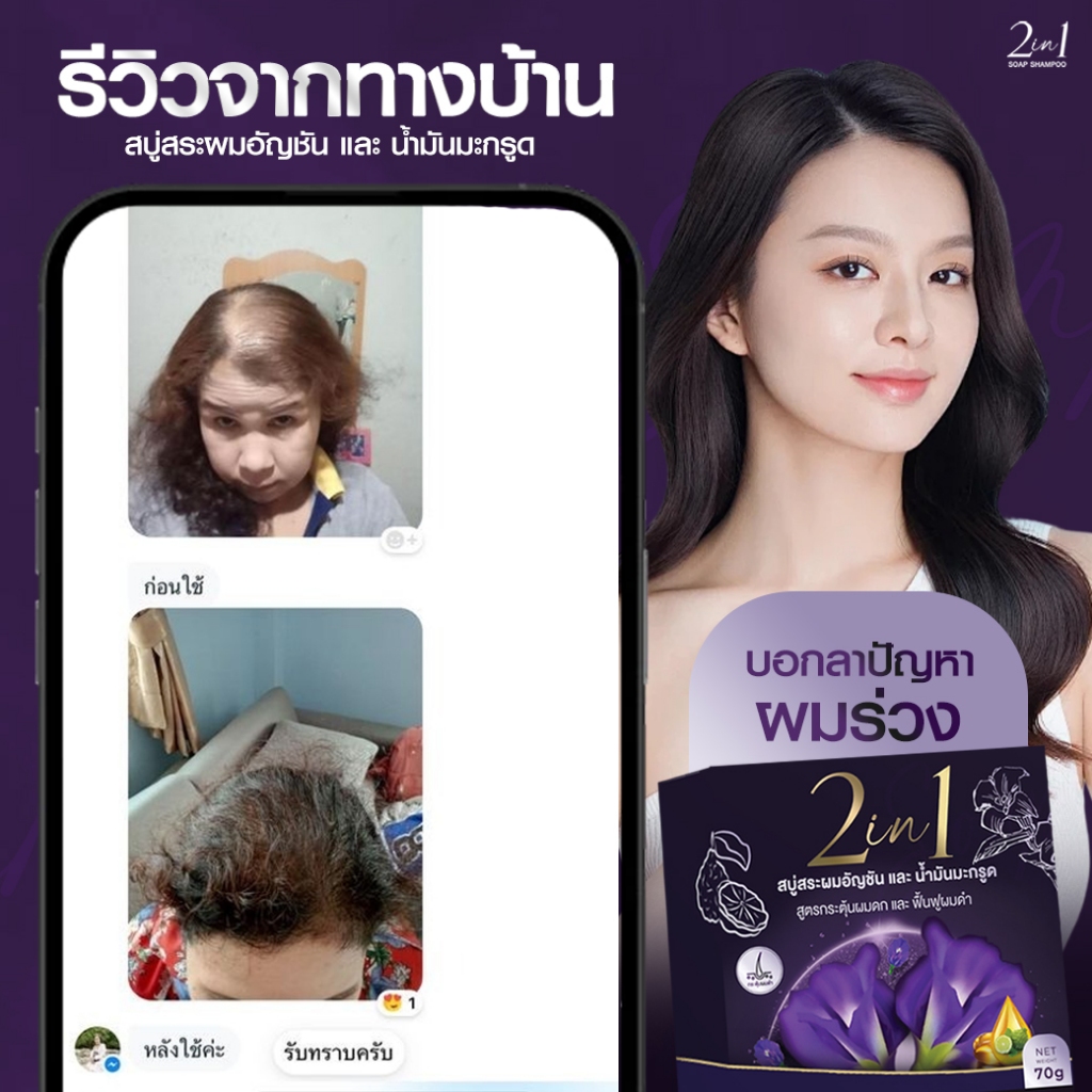 สบู่ผมอัญชัน ( ของแท้) สบู่2 in 1 ขนาดก้อนละ 50 กรัม