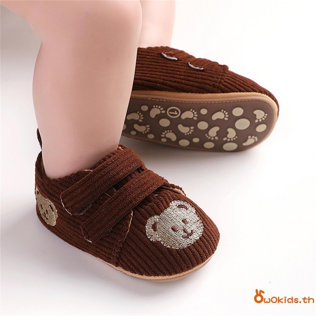เด็กทารกรองเท้าผ้าใบลําลองฤดูใบไม้ผลิฤดูใบไม้ร่วง Anti-Slip PVC Sole Bear เย็บปักถักร้อยเด็กทารกรองเท้าเด็กวัยหัดเดิน