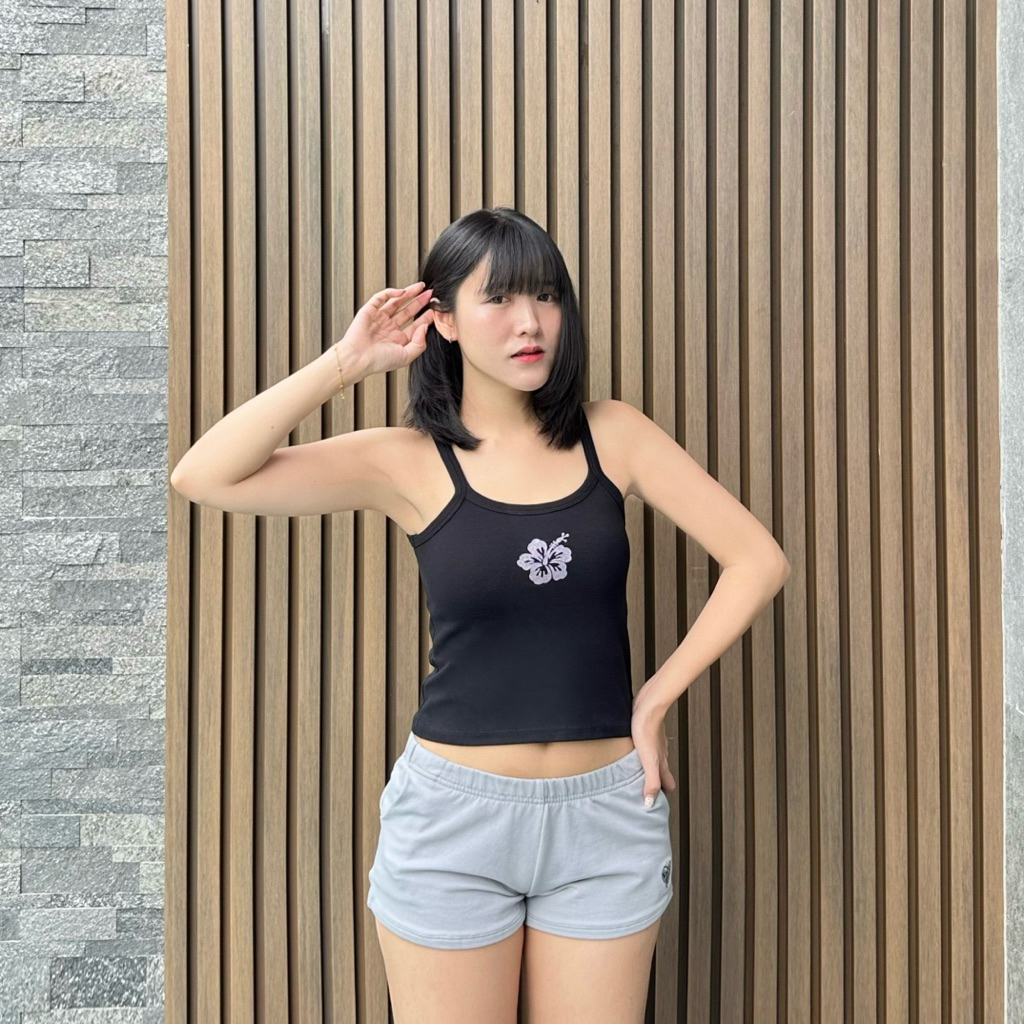 Mabeau - Chaba tank top เสื้อสายเดี่ยวสกรีนดอกชบากลิตเตอร์