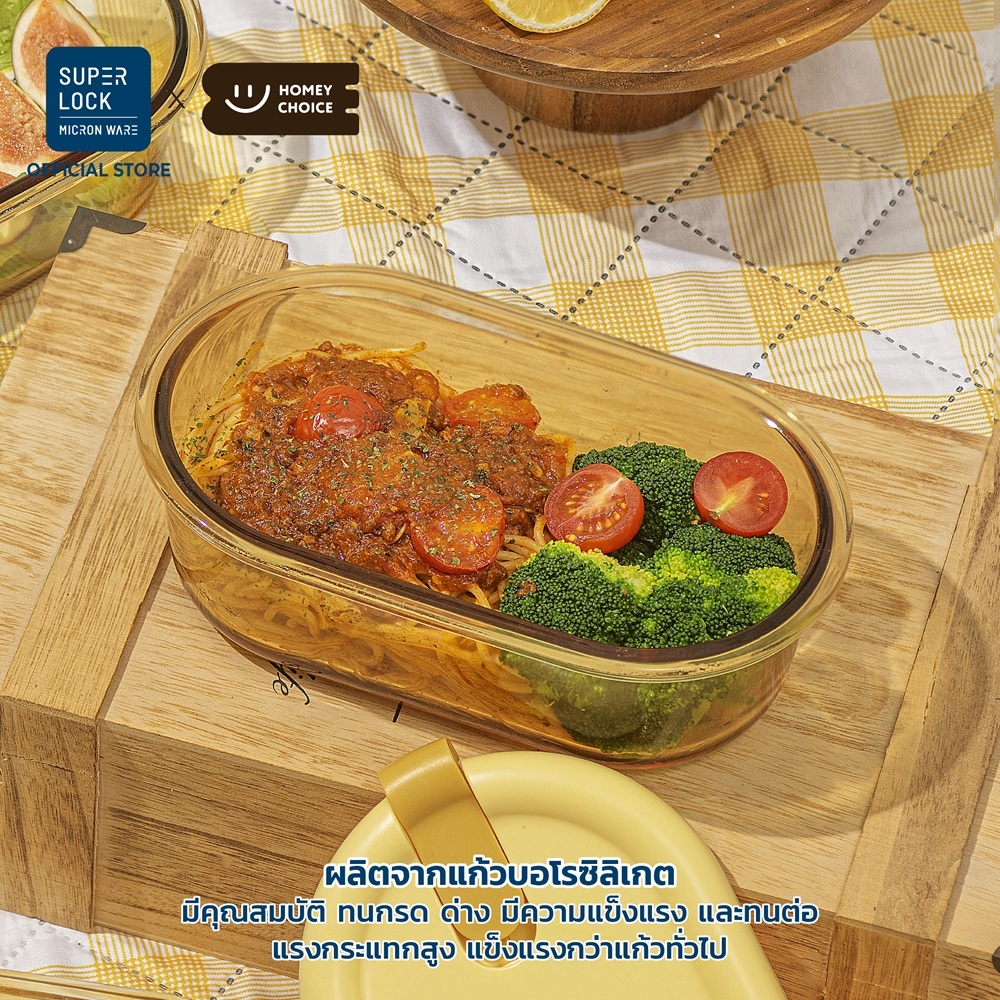 HomeyChoice กล่องอาหาร กล่องแก้วบอโรซิลิเกต เข้าไมโครเวฟได้ ทนอุณหภูมิ ขนาด 700-750ml รุ่น 8084