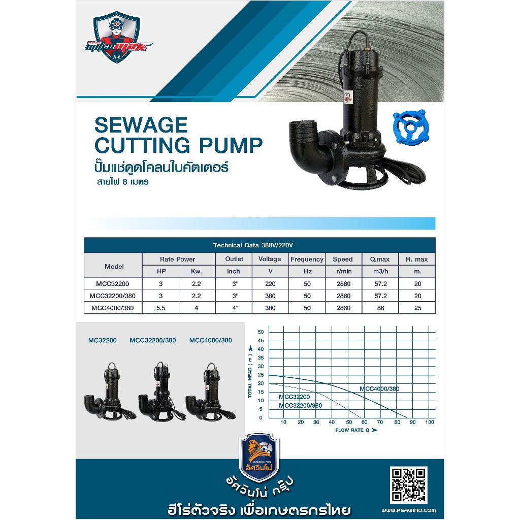 ปั้มน้ำไดโว่ ปั้มแช่ ดูดโคลน ใบพัดใบมีด กำลัง 4000วัตต์ ขนาดออก 4นิ้ว MITSUMAX รุ่น MCC44000 / 380v