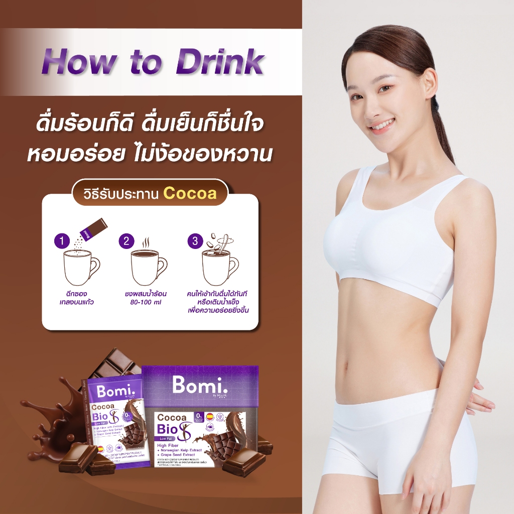 Bomi Cocoa Bio S (10x15g) โบมิ โกโก้ ไบโอ เอส โกโก้ไขมันต่ำ มีพรีไบโอติกส์