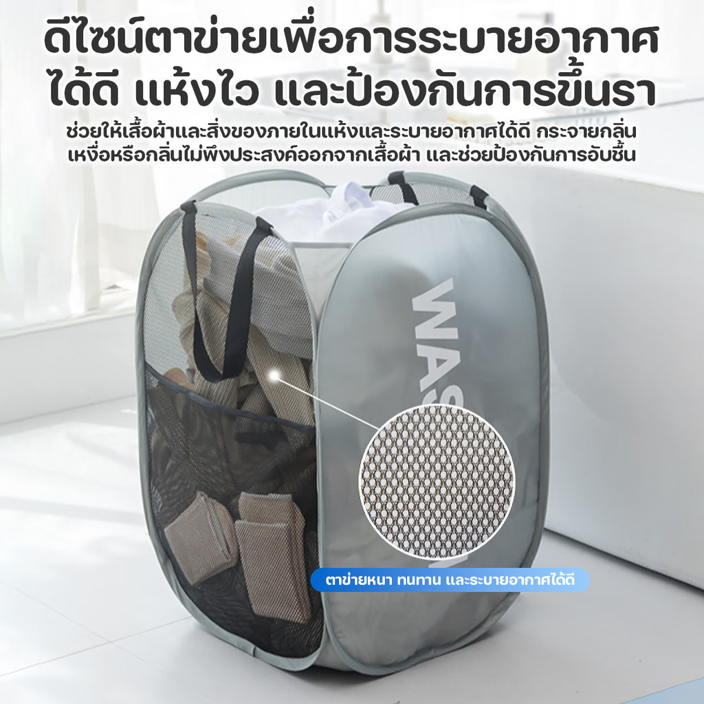 ตะกร้าตาข่ายใส่ของพับได้ ตะกร้าใส่ผ้าพับได้ ไม่ใช้พื้นที่หลังการพับ ขนาดใหญ่ แบบพกพา 58*36*36 ซม